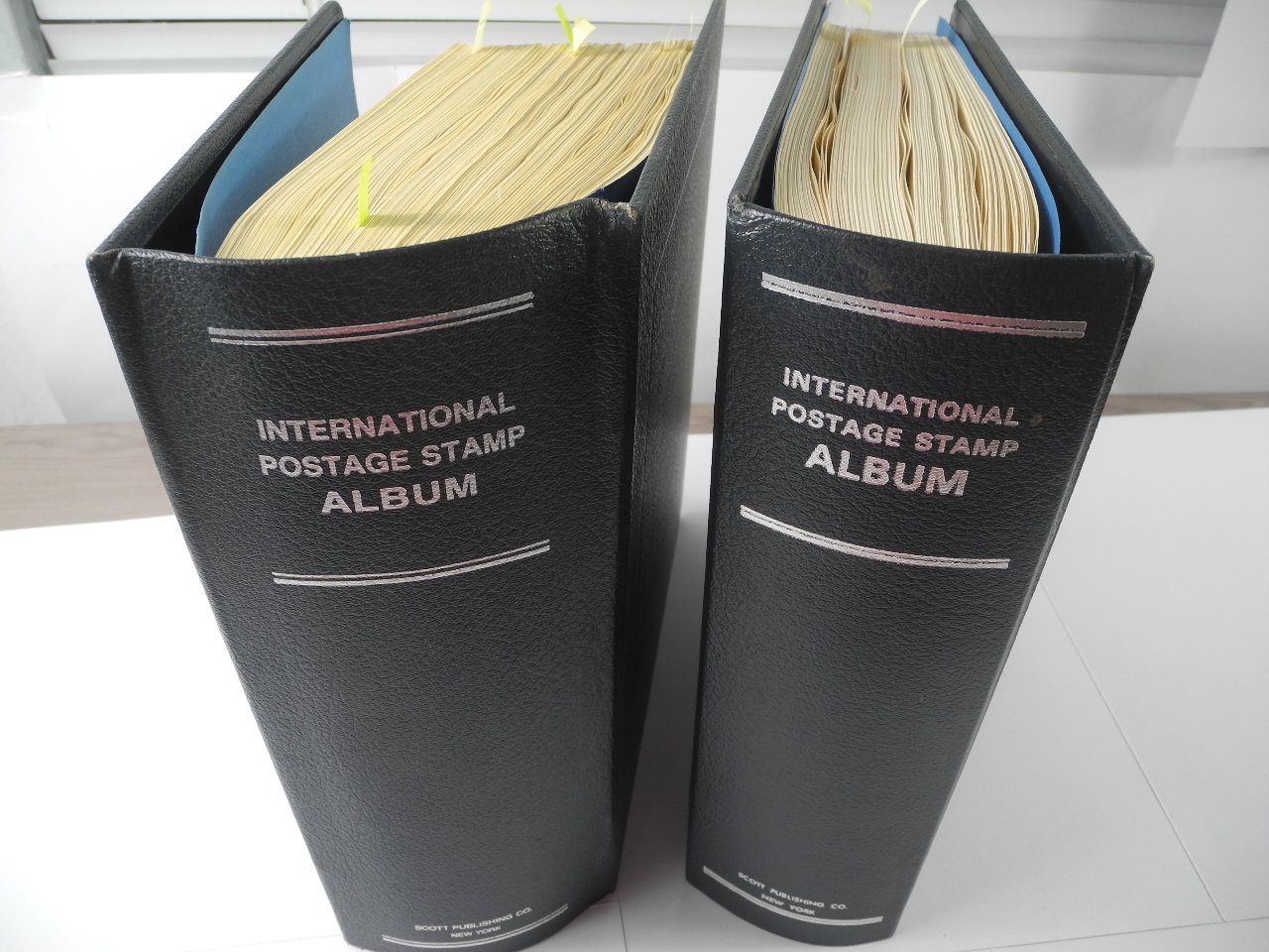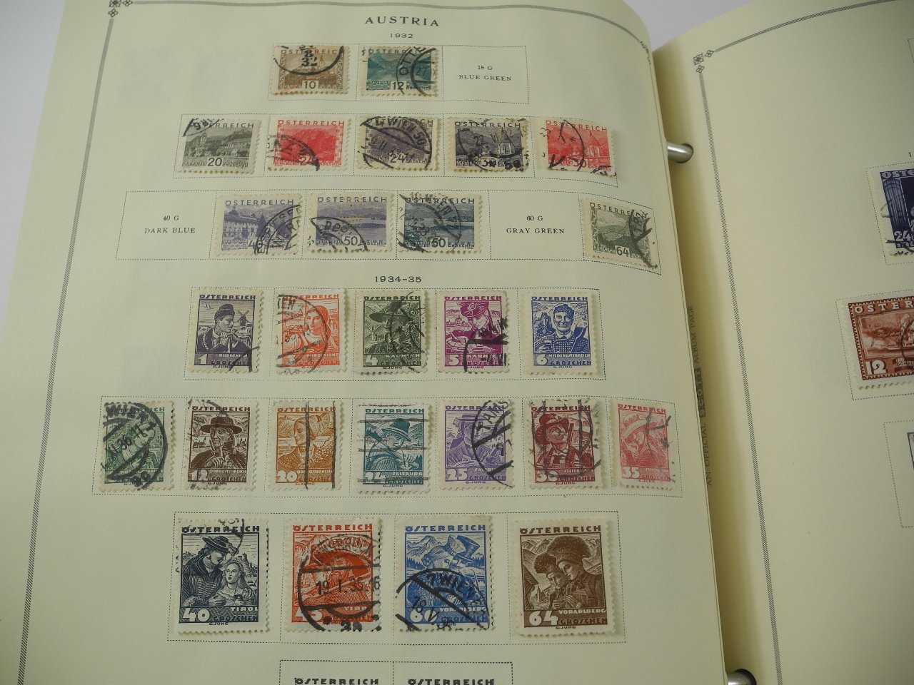 WW, Scott International Part 1(1840-1940), 2 Volumes(Pages(complete) and binders are Very Clean), Excellent Starter Stamp Collection mostly hinged on pages.