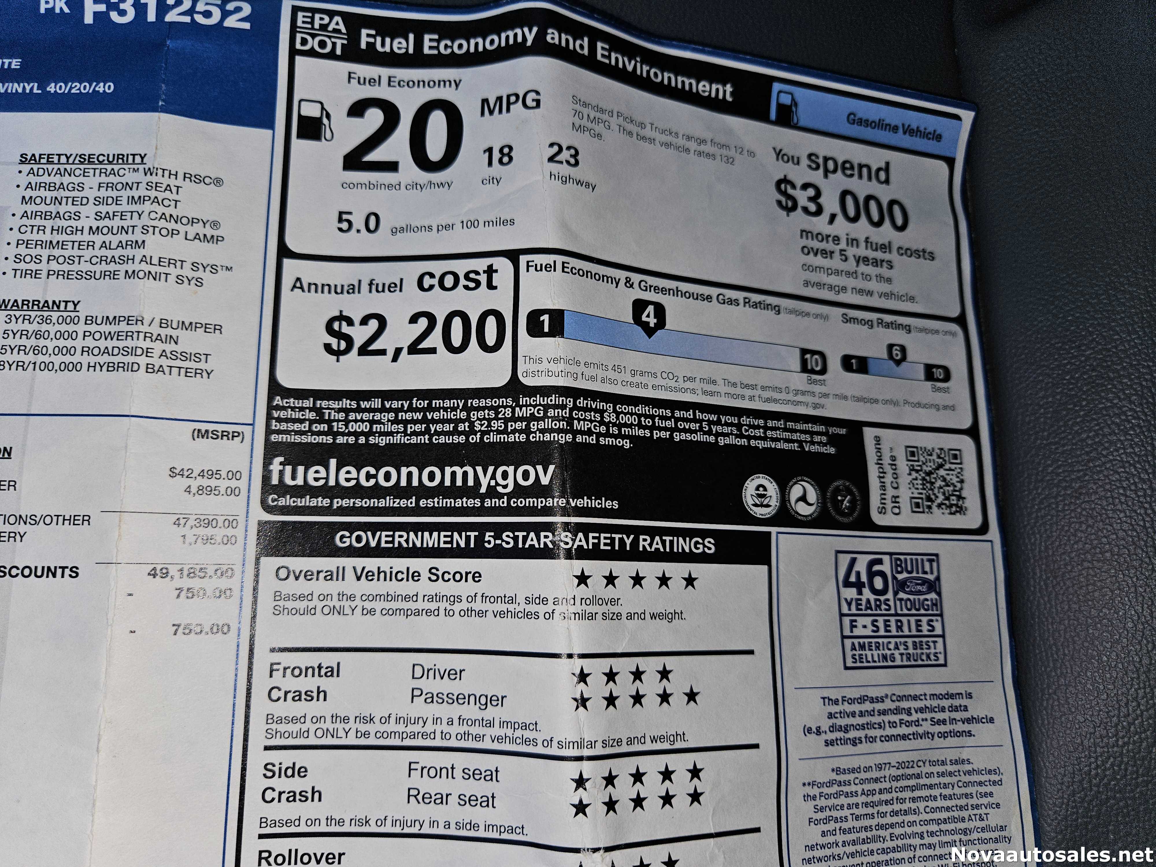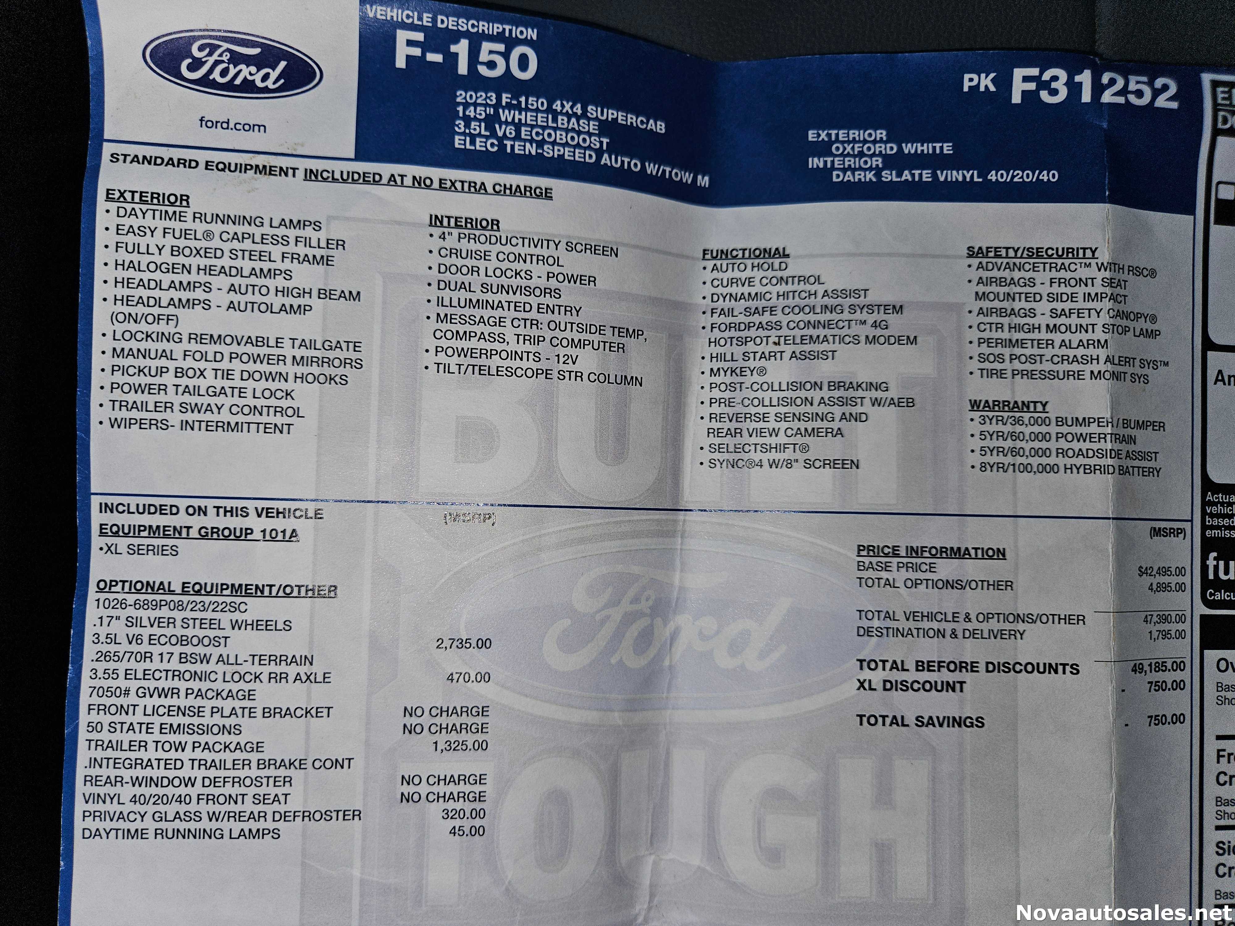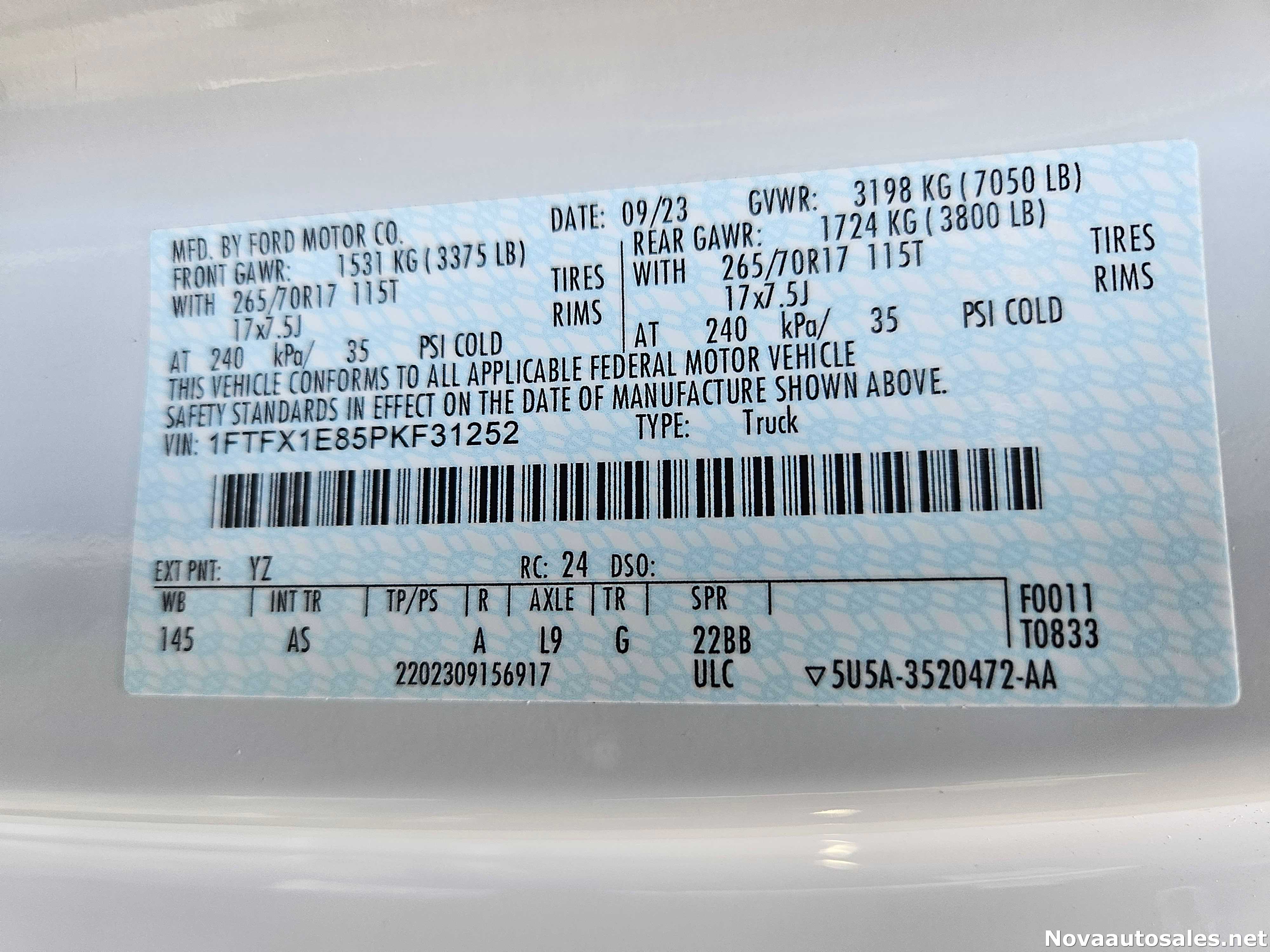 | Year & Make: 2023 Ford | Exterior Color: OXFORD WHITE |