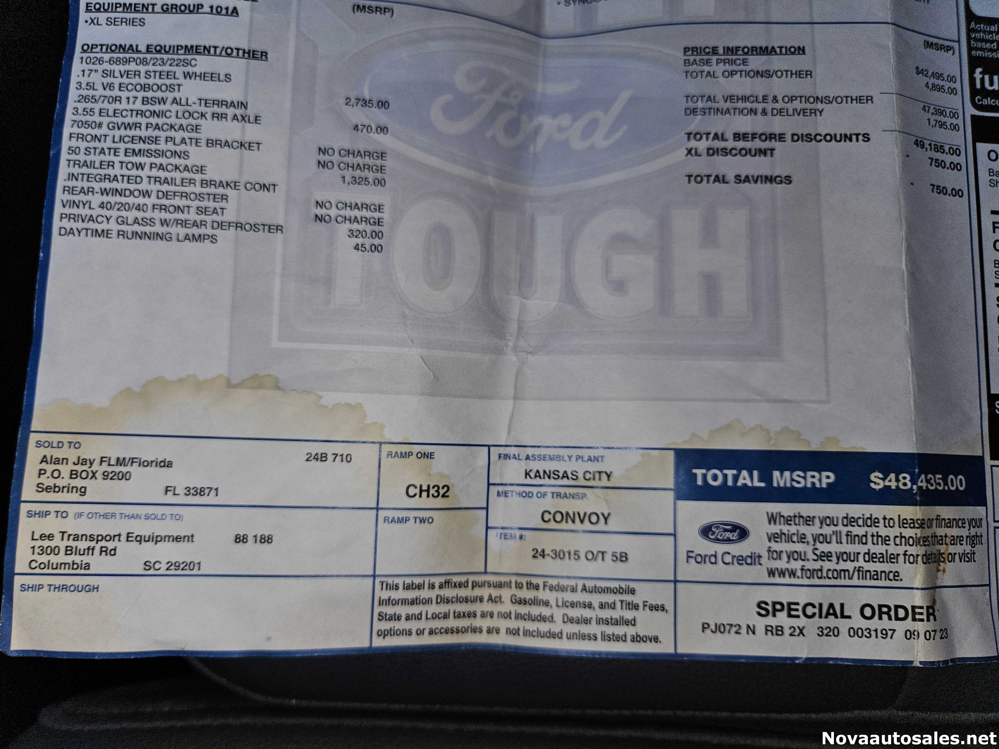| Model: F150 XL Super Cab 4X4 145" Wheelbase | Interior Color: DARK SLATE VINYL SEATS |