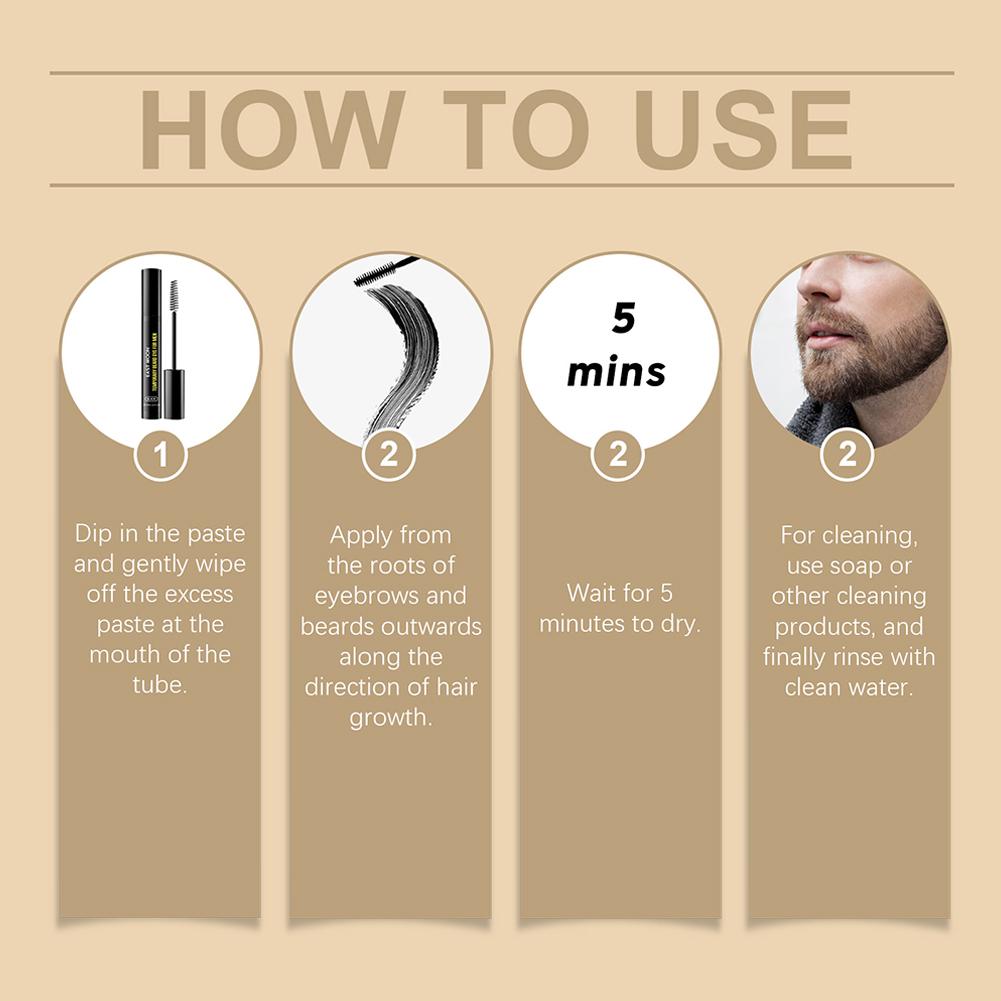 2.Apply from the roots of eyebrows and beards outwards along the direction of hair grow.