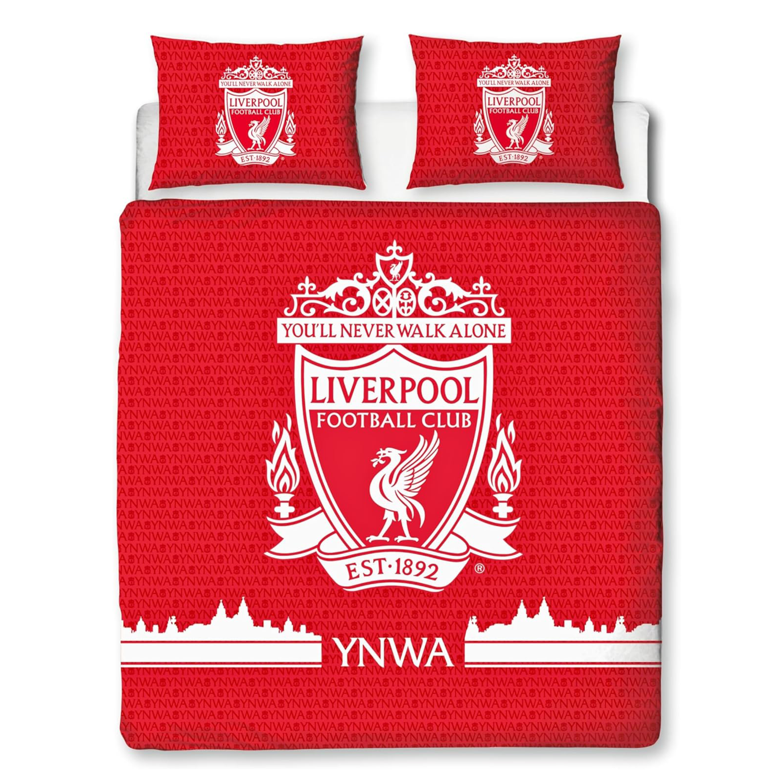 Cet ensemble de couverture de couette unique Liverpool FC est idéal pour tous les fans du club football emblématique. La conception comprend le Liverpool FC crest et le texte «Vous ne marcherez jamais seul» avec l'abréviation «ynwa» en blanc, réglé sur un fond rouge. L'inverse présente un motif de texte répété, «vous ne marcherez jamais seul» et l'abréviation «ynwa», réglée sur un fond blanc ordinaire. Cet ensemble de literie peut être lavé à la machine et séché sur un réglage bas.