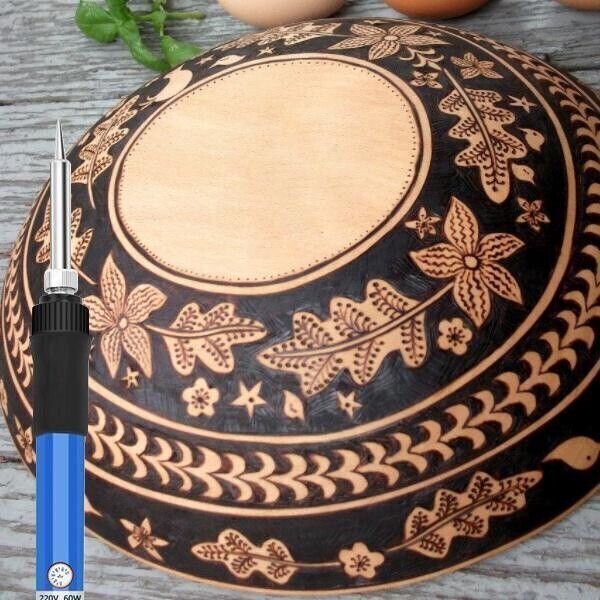 Brandmalerei ist die Kunst, Holz und Leder zu brennen oder zu löten, um ein dekoratives Branddesign auf der Oberfläche zu erzielen, und es kann nur mit den richtigen Werkzeugen richtig durchgeführt werden. Scharfe Spitze für ein präzises Brennen – die Spitzen sind winzig, sodass es sich anfühlt, als würden Sie nur mit einem Kugelschreiber oder Bleistift schreiben. Damit können Sie akkurate Brandmalerei-Projekte zeichnen, selbst wenn Sie nur ein Anfänger sind! Benutzerfreundliches Werkzeug - das ergonomische Design ermöglicht eine einfache Handhabung und belastet Ihre Hände nicht, sodass Sie es über einen langen Zeitraum verwenden können. Vielseitig und multifunktional – kann zum Schnitzen und Verbrennen von Holz, Leder und Papier verwendet werden. Die Wechselspitzen können auch zum Löten von winzigen elektronischen Bauteilen verwendet werden. Schnelles Aufheizen mit einstellbarer Temperatur – seine einzigartige Keramiktechnologie heizt die Spitze schnell auf und behält dabei eine konstante Temperatur bei. Drehen Sie einfach den mechanischen Knopf, um die Hitze einzustellen. Erstellen Sie noch heute wunderschöne Holzhandwerke mit diesem 28-teiligen Brandmalerei-Set für Holz! Stiftlänge: 7,7 Zoll (195 mm) Eingangsspannung: 110 V/220 V Maximaler Stromverbrauch: 60 W Spannungseinstellbereich: 220-240 V Einstellbarer Temperaturbereich: 200-450° C Netzsteckeroption/en: US-Stecker / EU-Stecker / UK-Stecker Lieferumfang: 1 x Stift + 28 x Malspitze