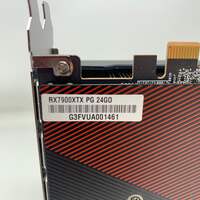 AsRock Radeon RX 7900 XTX 24GB GDDR6 Graphics Card B0F6YRGX5Z Items included in this sale: AsRock Radeon RX 7900 XTX 24GB GDDR6 Graphics Card B0F6YRGX5ZSorry, no box or anything else included *Please note, if it is not listed it is not included - such as power cables or other accessories. Specifications: Collection Computer Part Sub-Collection Graphics Card (GPU) Brand AsRock Chipset/GPU Model Radeon RX 7900 XTX MPN B0F6YRGX5Z VRAM 24GB Memory Type GDDR6 Type Graphics Card Used for Mining Yes Condition Used UPC 198361896186 Serial# NO VISIBLE SERIAL Chipset Manufacturer AMD Cosmetic condition: This device is used in good condition. There are some scratches or scuffs from moderate use. Please view our close up photos, as these are taken of the actual item being offered for sale. Functionality condition: This device is in fully working, used condition. It has been fully tested to ensure all aspects are working.