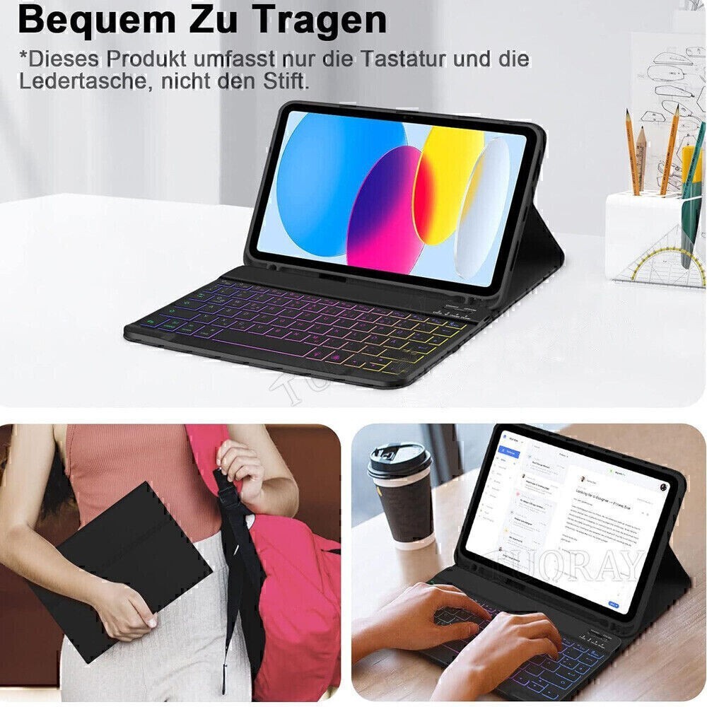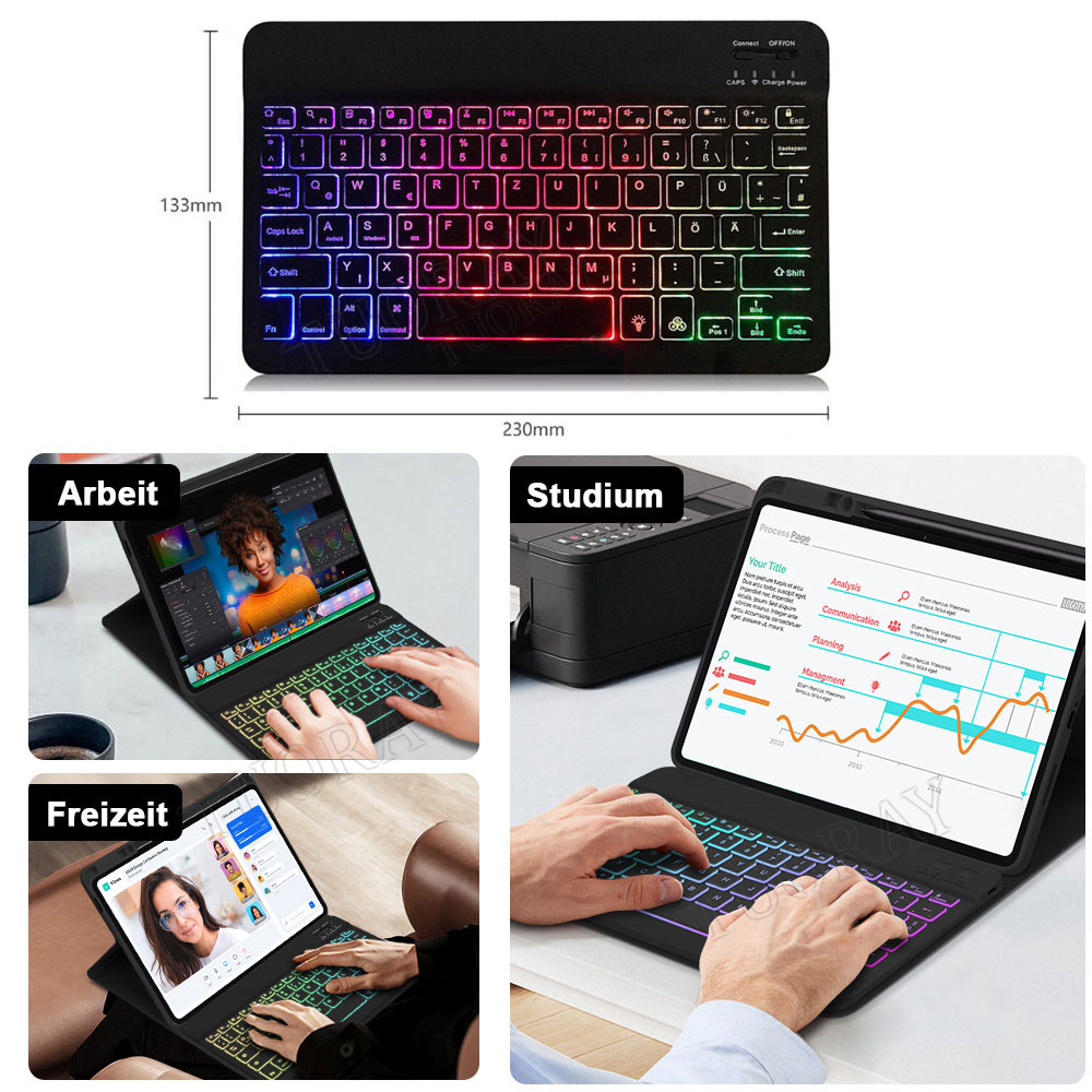 Hülle mit Beleuchtet Tastatur für iPad A16 11/10/9/8/7. Gen Air 11" M2 M3 Pro 11