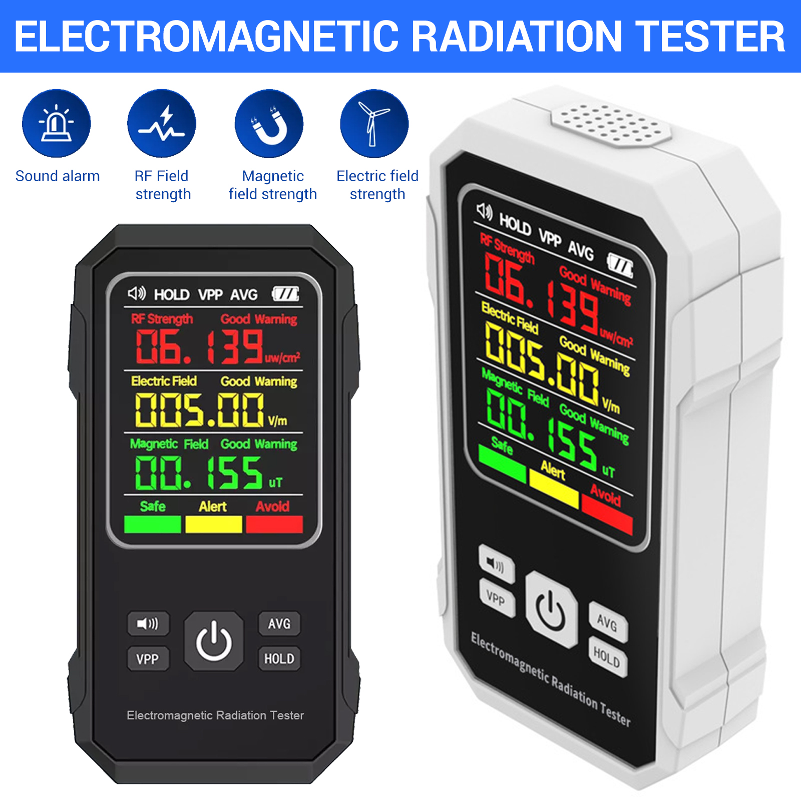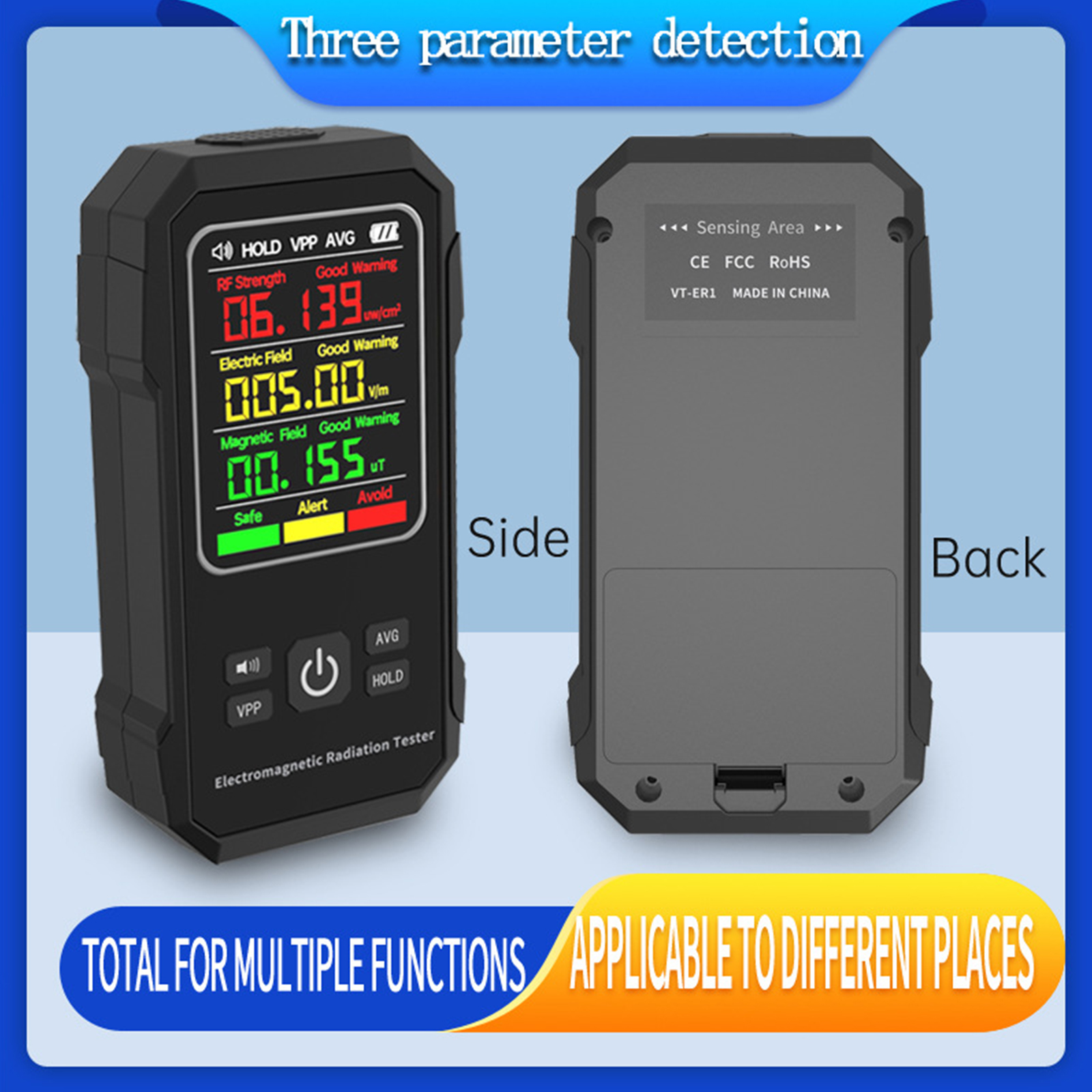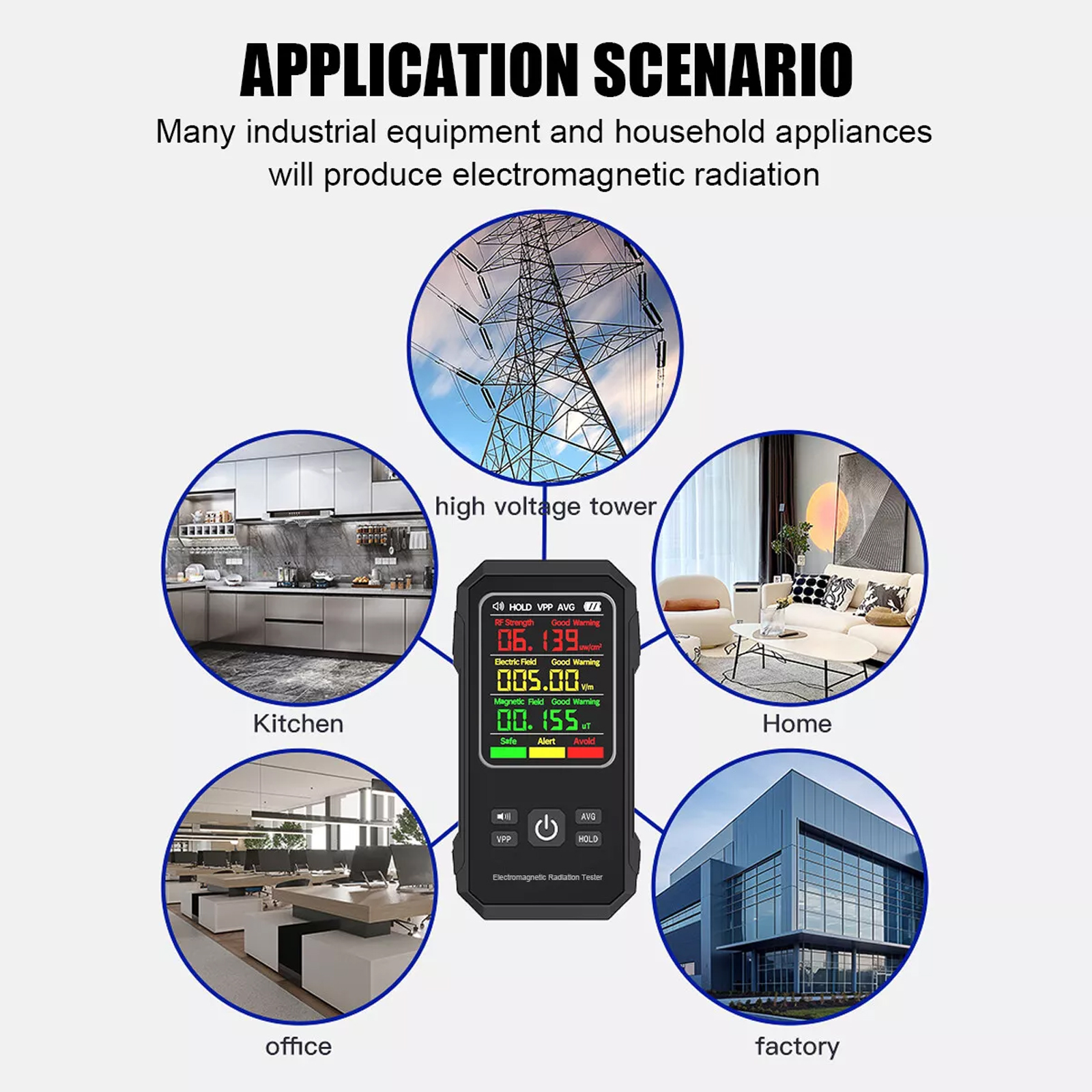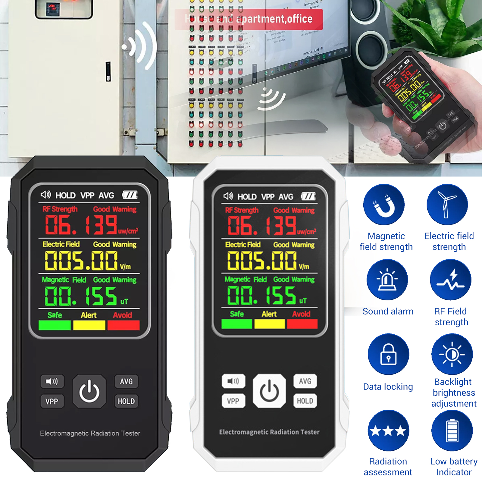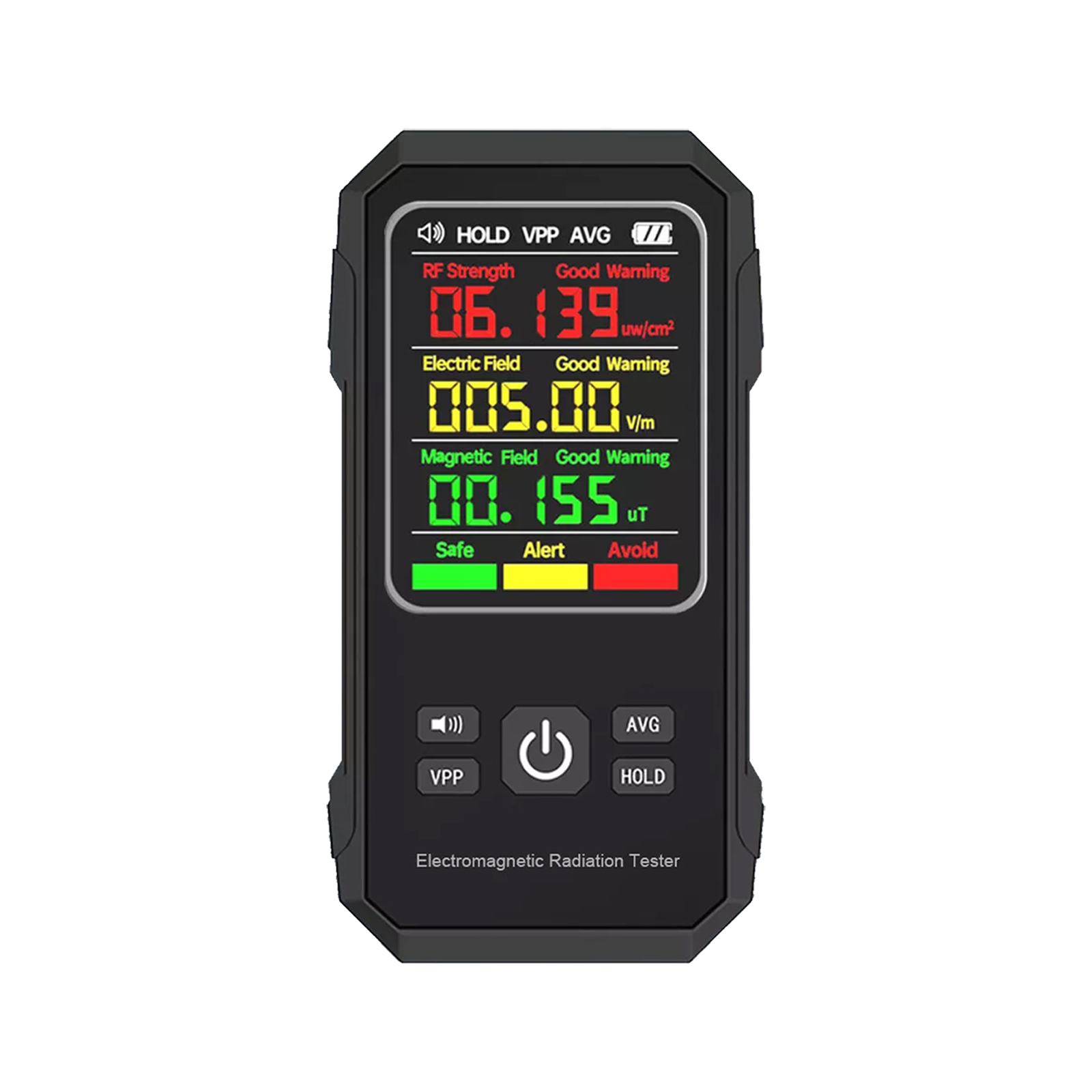 - Simultaneous Multi-Parameter Detection: Effortlessly monitor RF strength, electric field strength, and magnetic field strength all at once. The device displays real-time data and alerts when levels exceed safety standards.