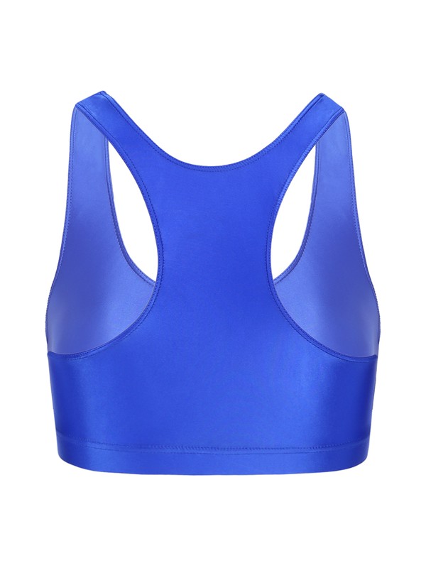 Women's Oil Shiny Semi Transparent Bra Workout Sport Bras Racerback Crop Tops