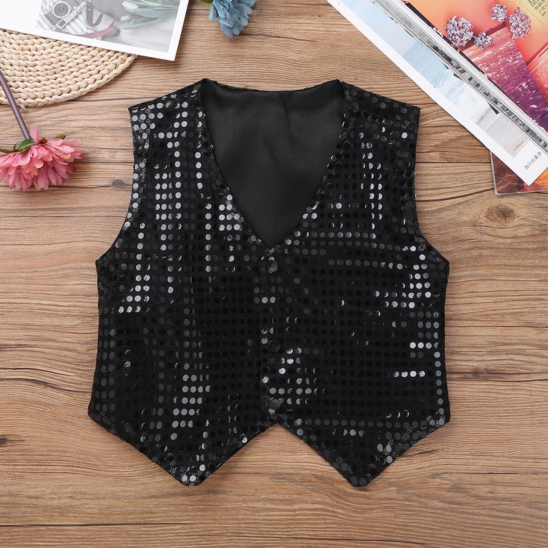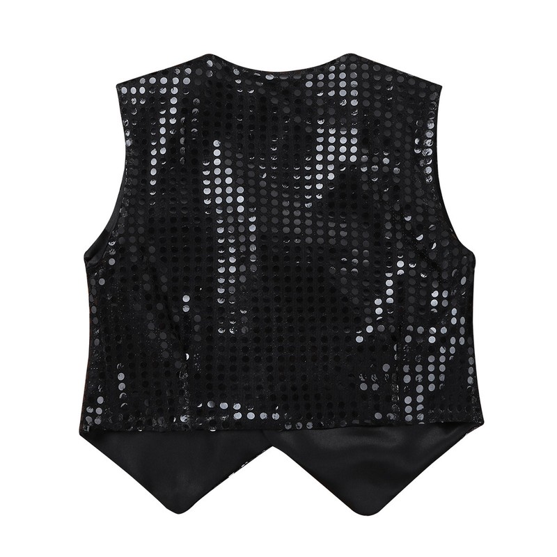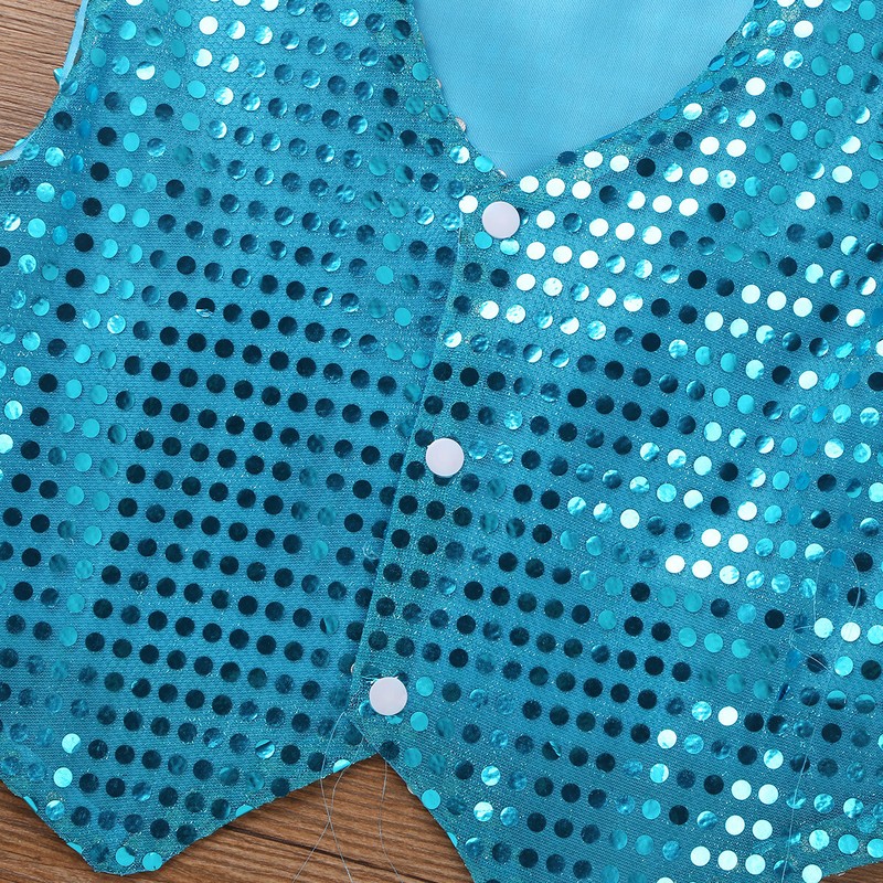Girls Boys Sequins Dance Vest Top Waistcoat Hip Hop Jazz Performance Costume