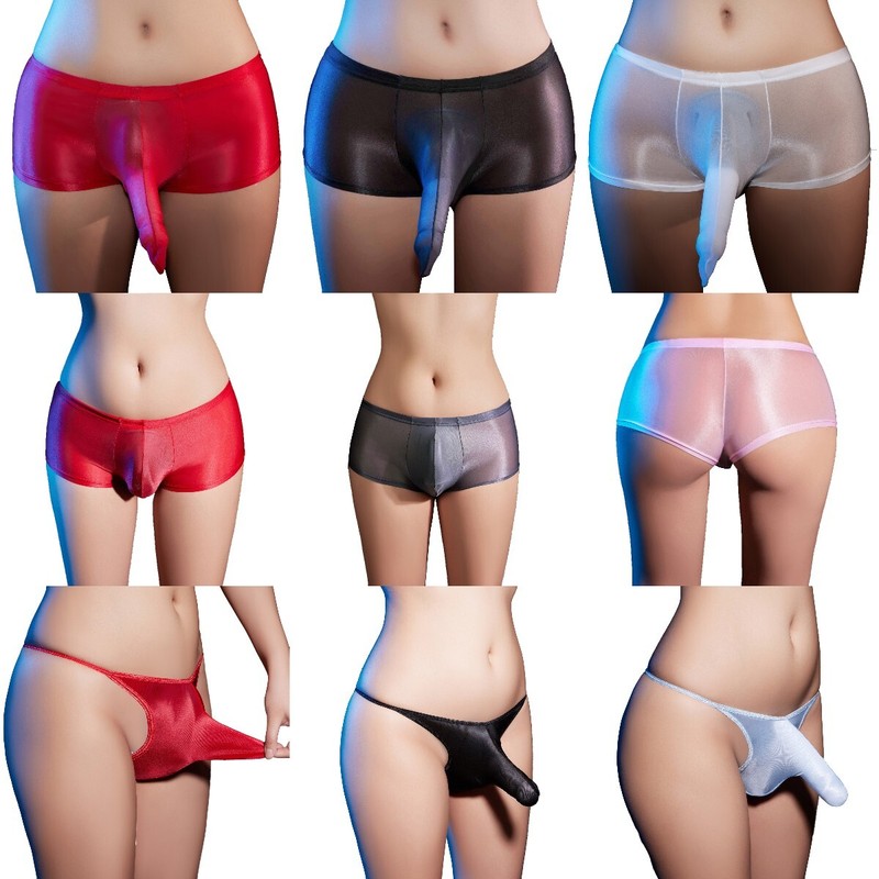 US Men's Glossy See Through Boxer Briefs Pouch Panties Stretchy Underwear Trunks
