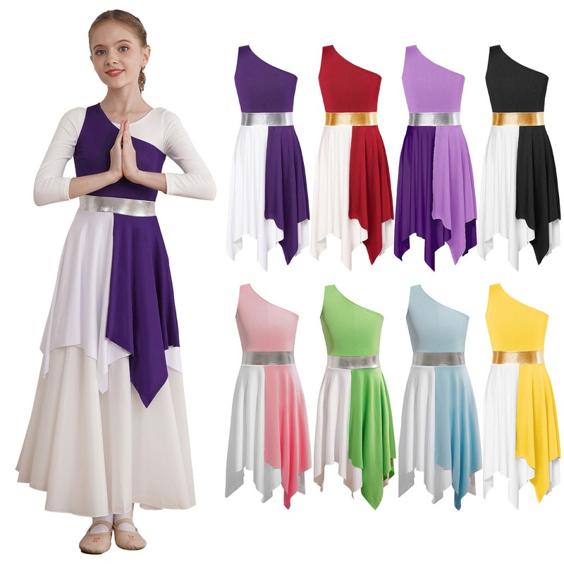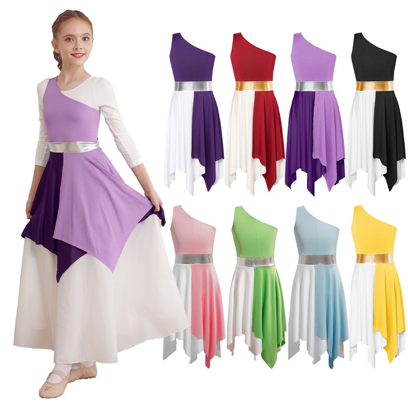 US Kids Girls Liturgical Praise Dance Dress Color Block Worship Tunic Dancewear