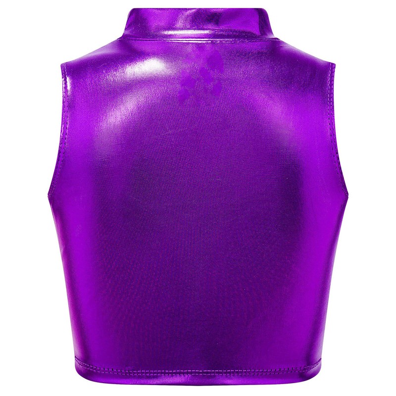 Kids Girls Metallic Sleeveless Turtleneck Crop Tank Tops for Ballet Dance Stage