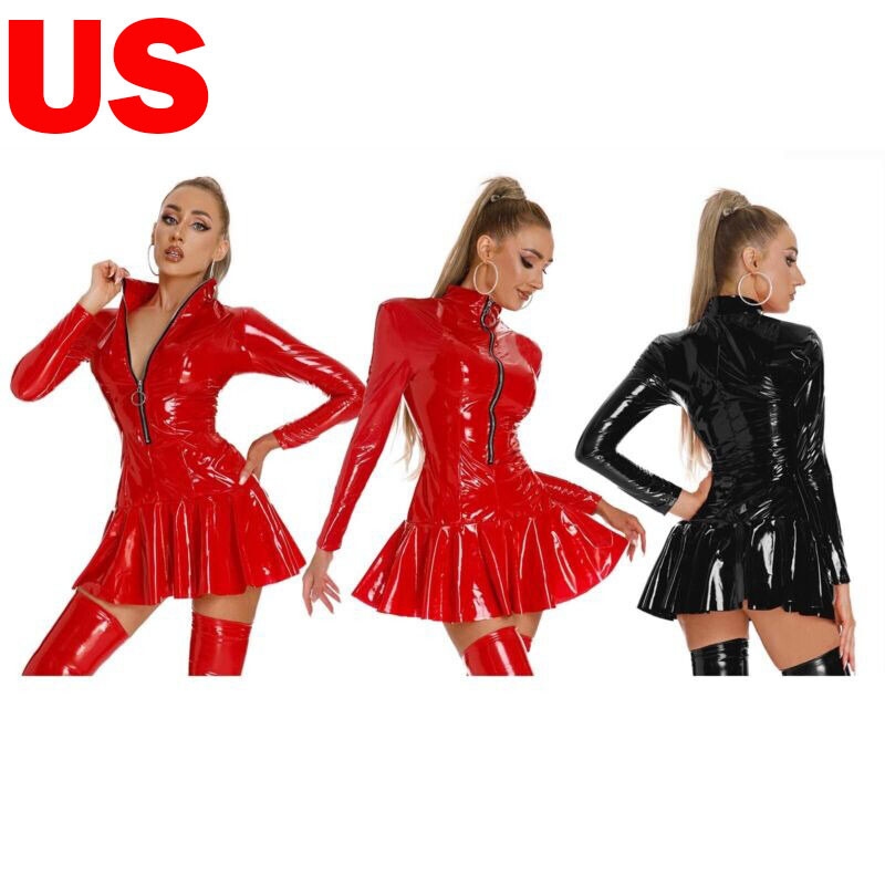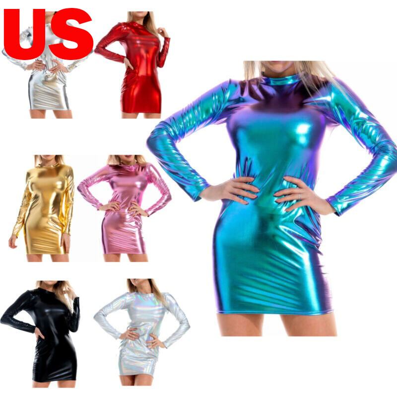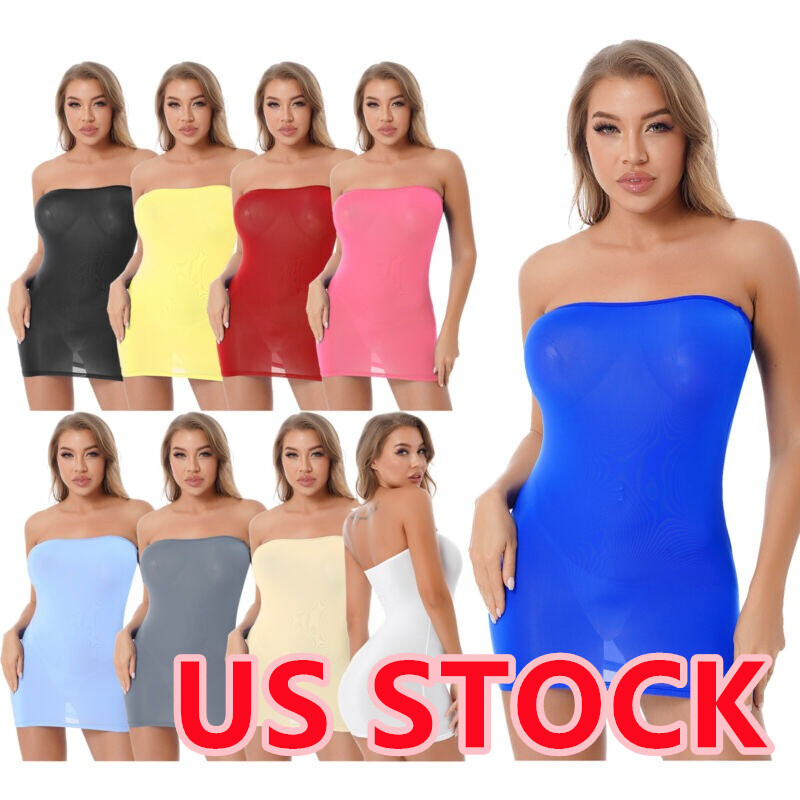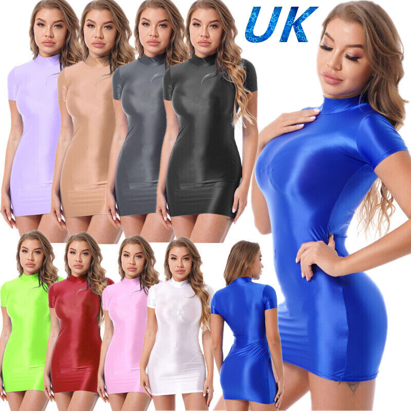 Womens Glossy Bodycon Mini Dress Sexy Silky Tights Party Lingerie Clubwear