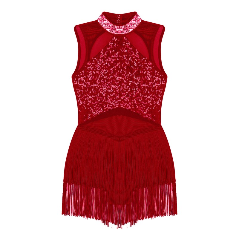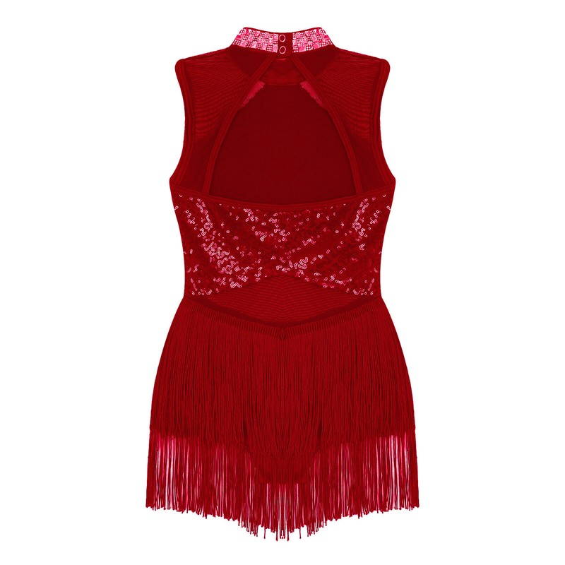 US Kids Girls Sequin Tassel Latin Dance Dress Jazz Tango Rumba Salsa Ballroom