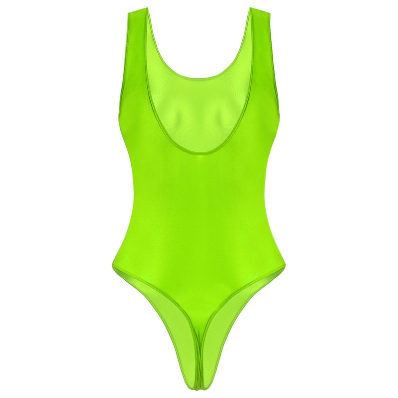 Women Glossy Sexy High Cut Thong Leotard Bodysuit Nightwear Monokini Swimsuit