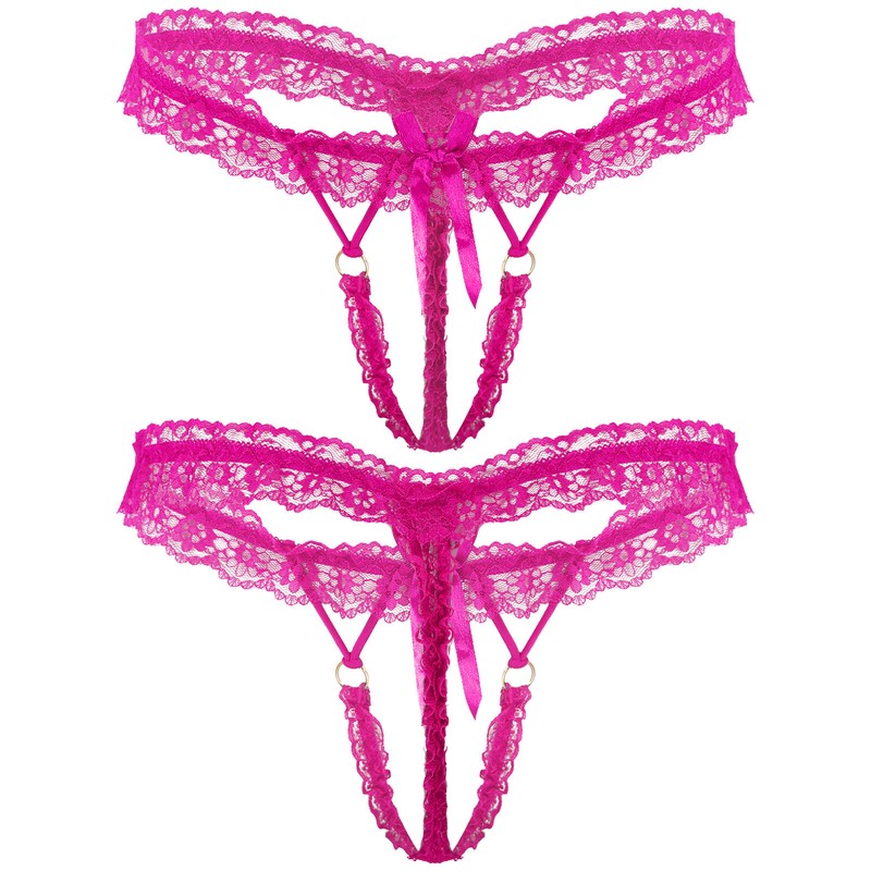 Mens Frilly Lace Thongs Bowknot Elastic Waistband G-string Crotchless T-back.