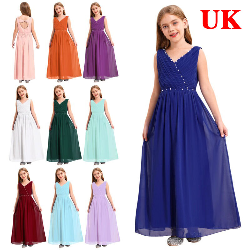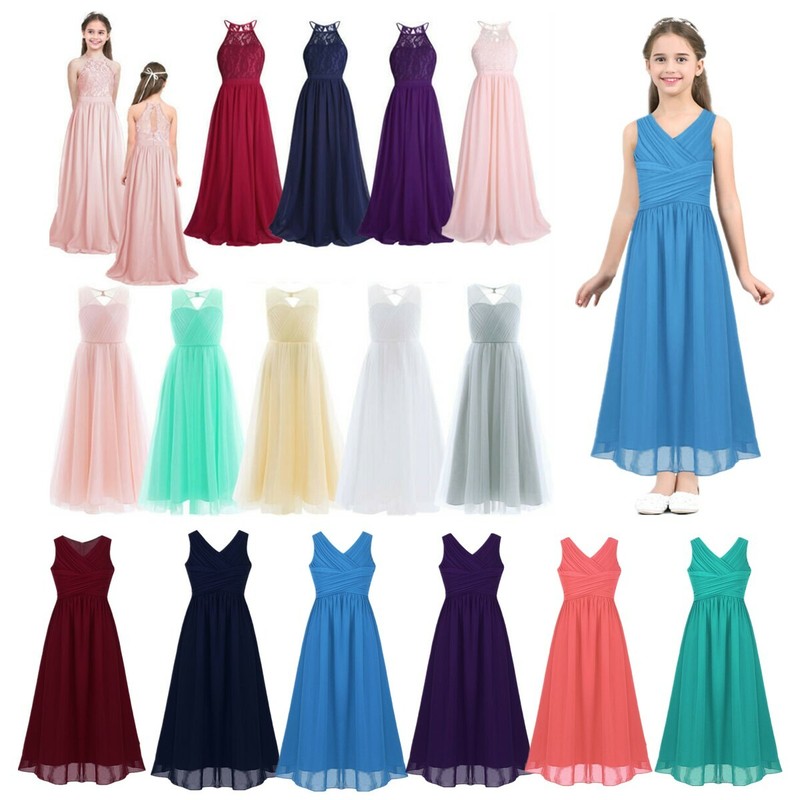 Kids Flower Girls Dress Gown Formal Wedding Bridesmaid Long Dresses Pageant