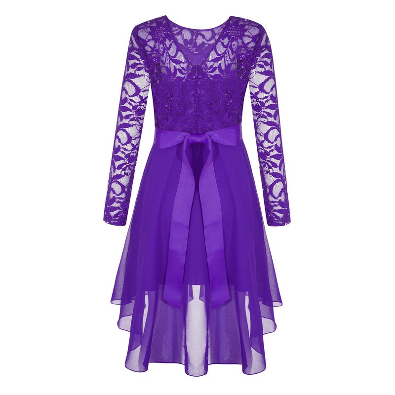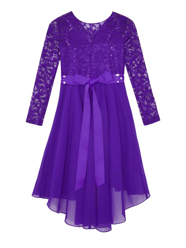 High-low hem dress matches with rhinestone belt to add more highlights, making girl an elegant and eye-catching princess.