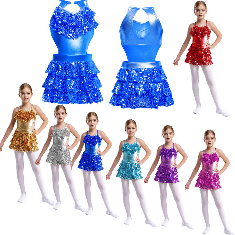 The floral lace bodice intersperses shiny sequins, and is designed with see-through collar and long sleeve for chic and beautiful look.