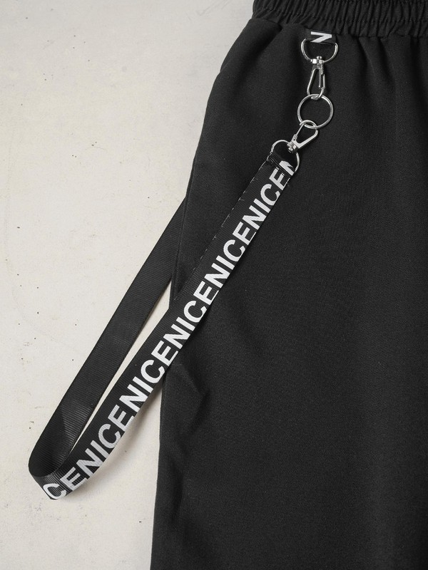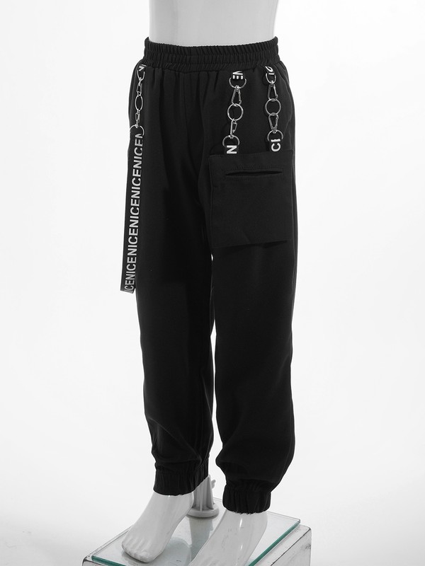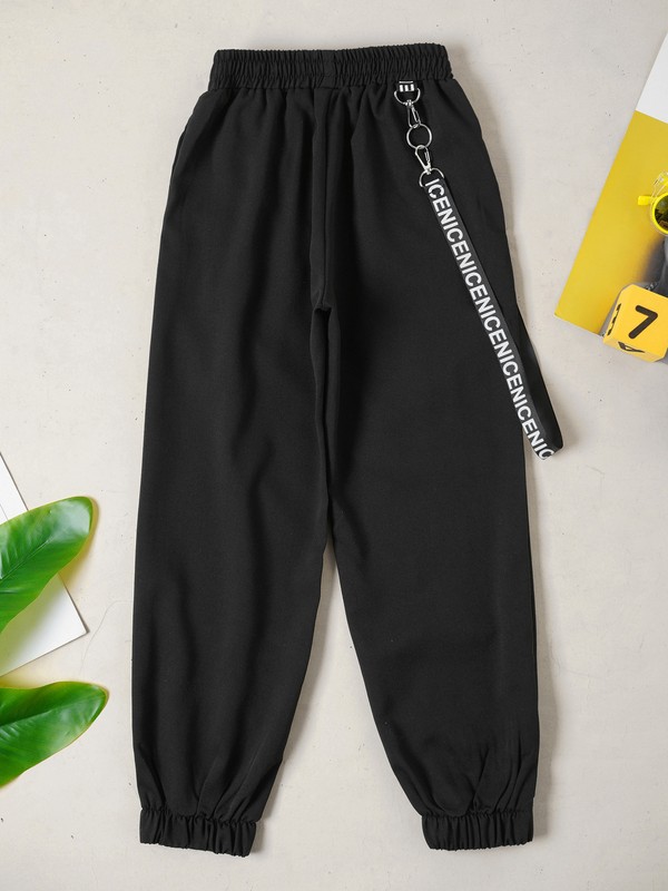 Matching elastic waistband pants with chain and pocket for decoration. Stylish set for your girl.