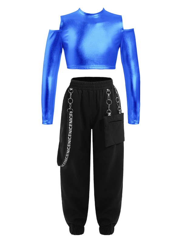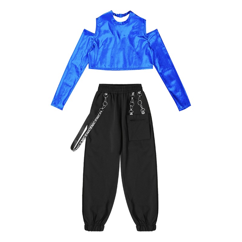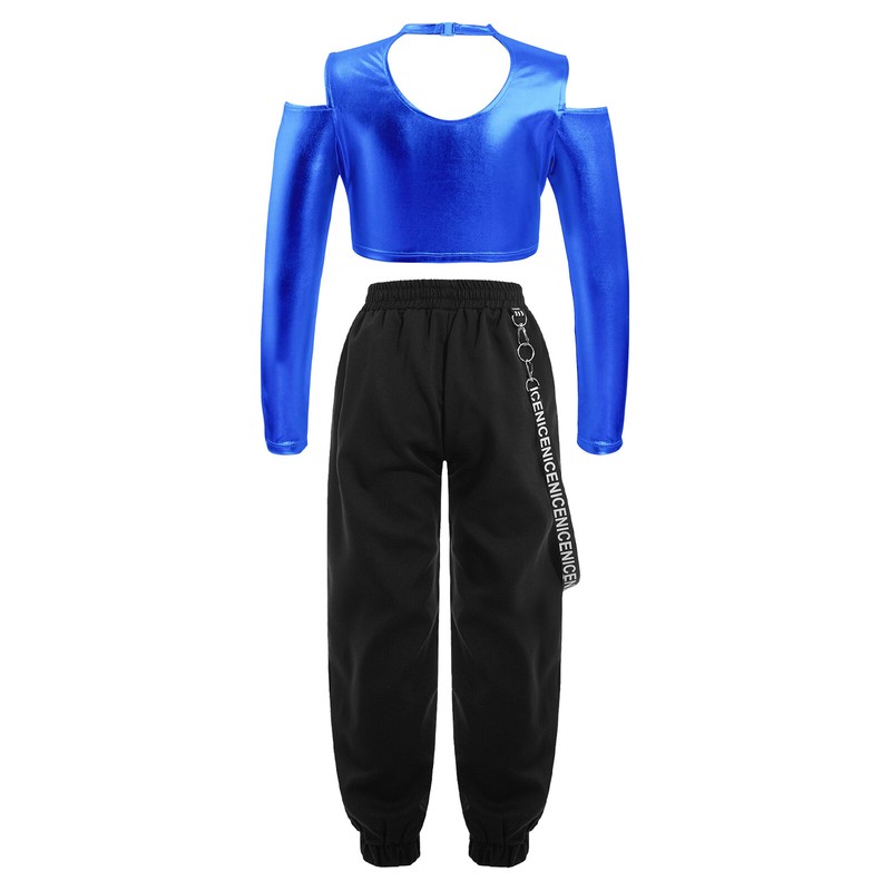 Kids Girls Hip Hop Jazz Modern Dancewear Outfits Sequins Crop Tops with Pants