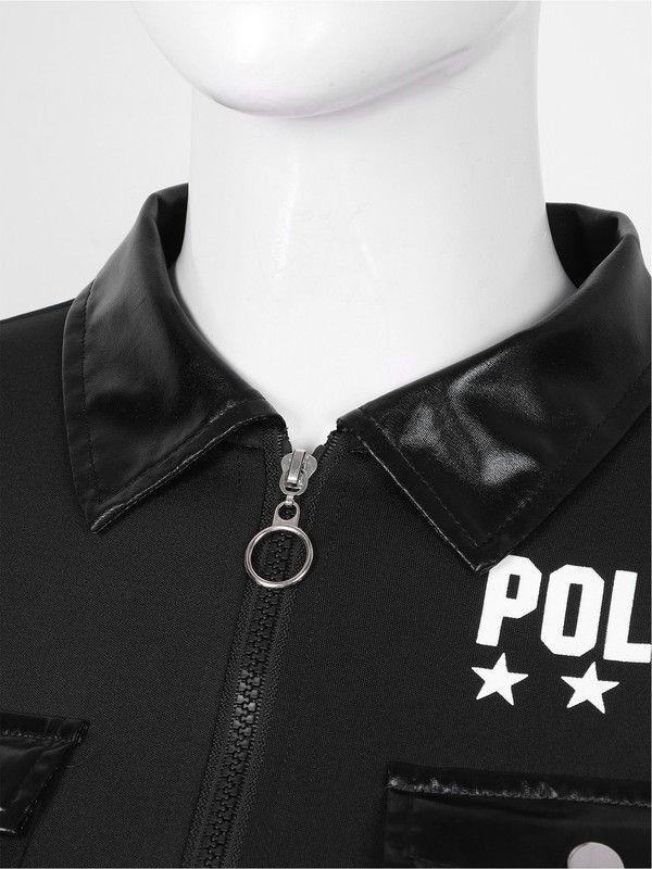 Policewome oufit includes romper, faux leather belt and purse, hat and a pair of cuffs, 5-piece a set.