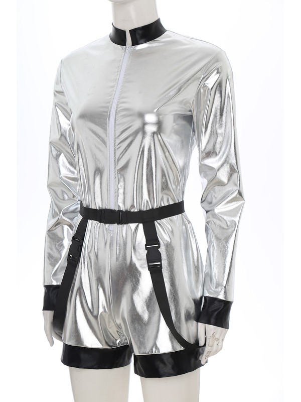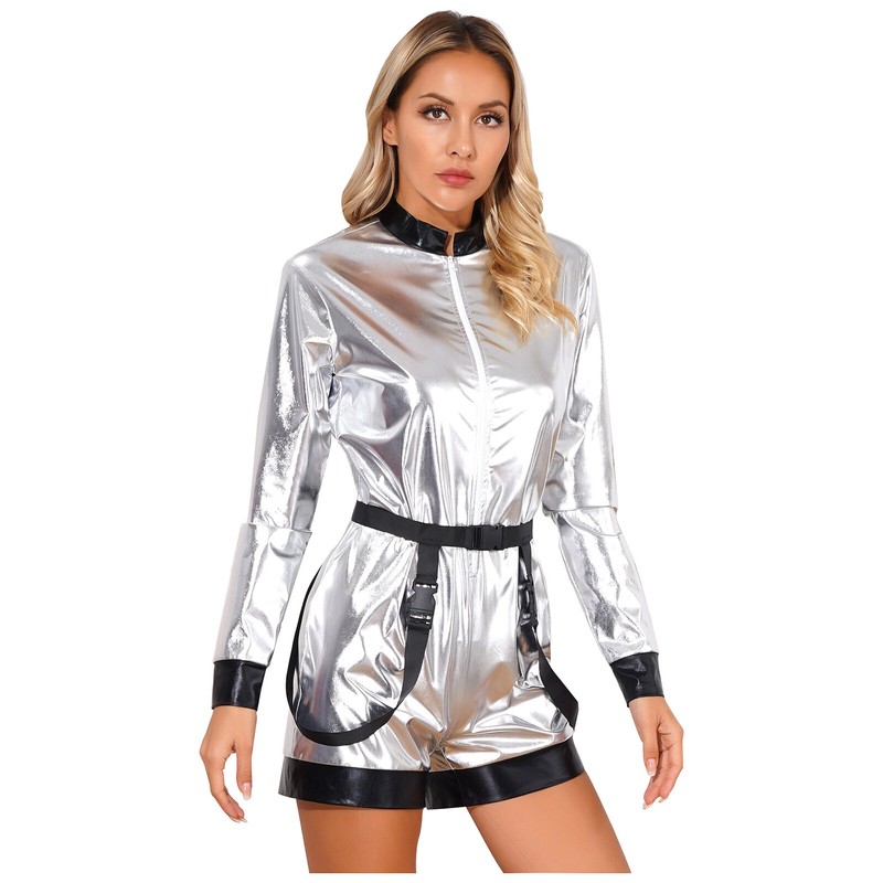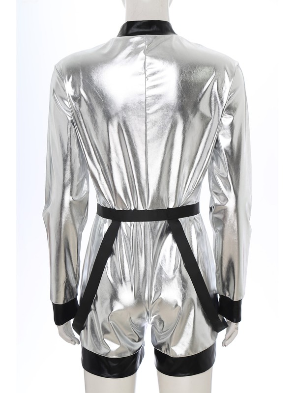 Women's Astronaut Costumes Shiny Alien Jumpsuit Sexy Space Cadet Bodysuit
