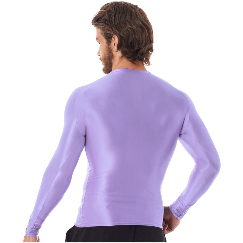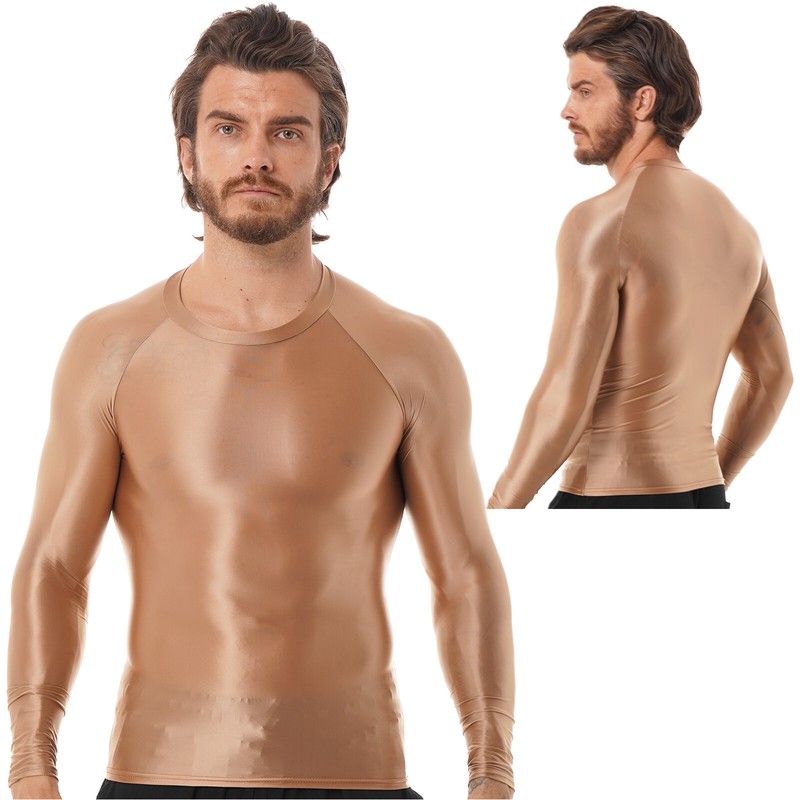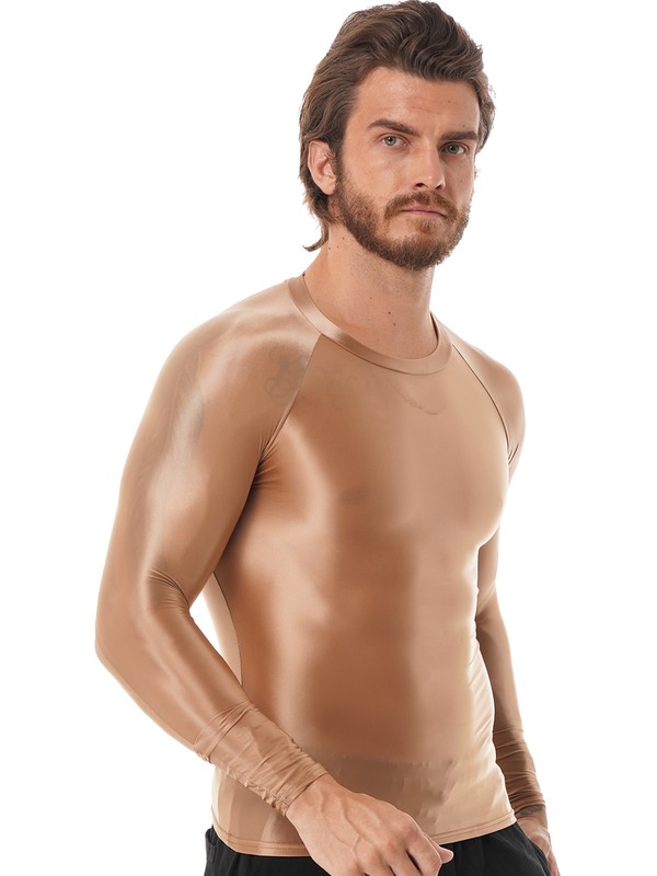 Men's Shiny Long Sleeve Shirts Sportswear Gym Sheer Compression T-Shirt Tops