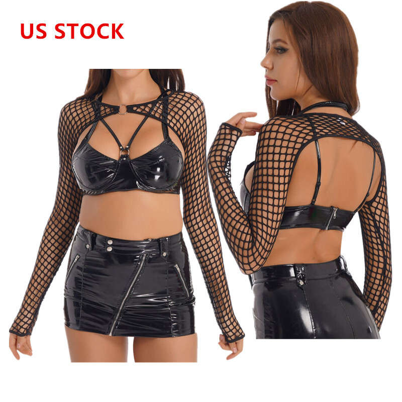 Womens See-through Mesh Cutout Crop Top U Neck Sleeveless Vest Lingerie Tank Tops.