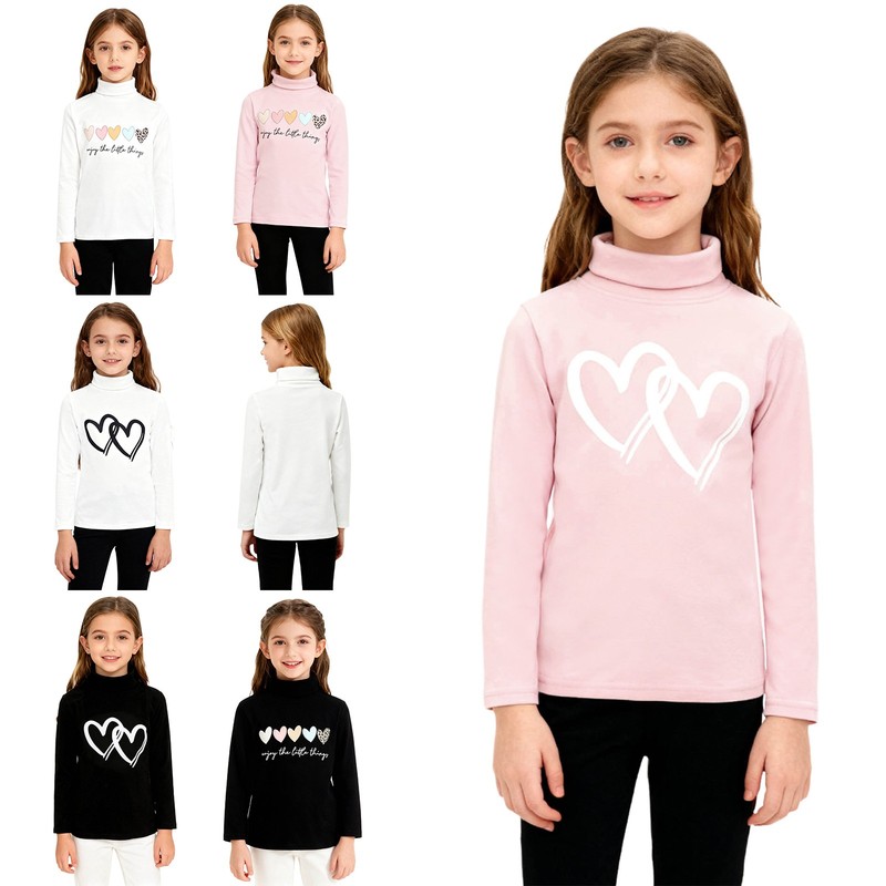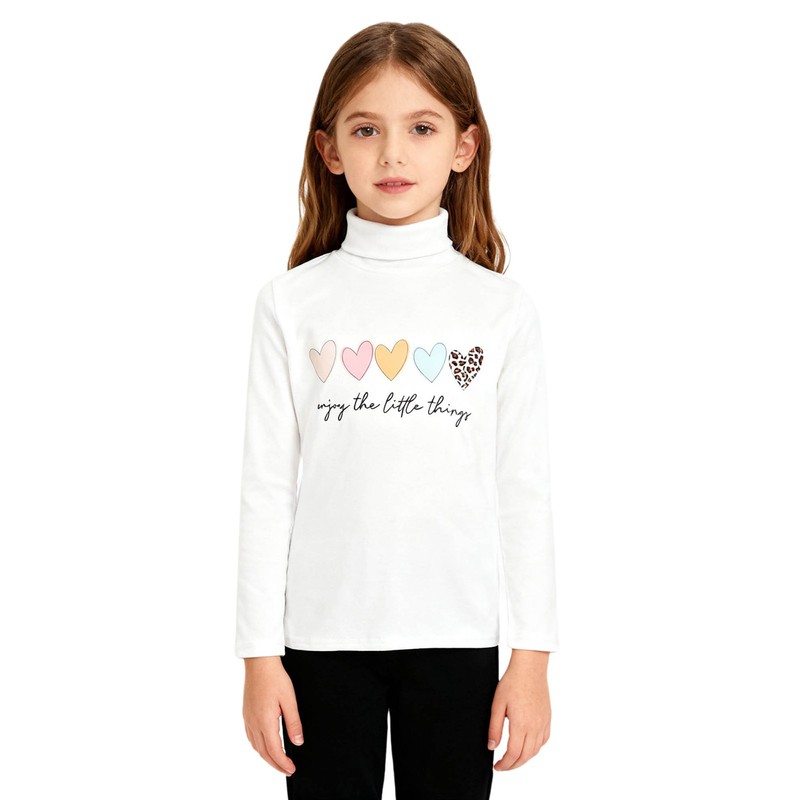 Long sleeve thermal shirt with a heart pattern print, adding a cute and trendy element, making your little girl stand out.
