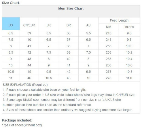 Asian Size : 35,36,37,38,39,40,41,42,43,44,45