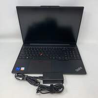 Lenovo ThinkPad E16 Gen 1 16" i7-1355U 16GB RAM 1TB SSD Items included in this sale: Lenovo ThinkPad E16 GEN 1 16" i7-1355U 1.7GHz 16GB RAM 1TB SSD Genuine Charger *Please note, if it is not listed it is not included - such as power cables or other accessories. Specifications: Collection Windows Laptops Sub-Collection Lenovo Laptop Brand Lenovo Model ThinkPad MPN E16 GEN 1 Release Year 2023 Operating System Windows 11 Pro Processor Brand Intel Processor i7-1355U Processor Speed 1.7GHz GPU/Graphics Card N/A Memory (Ram) 16GB RAM Storage 1 1TB Storage Type 1 SSD Storage 2 N/A Storage Type 2 N/A Screen Size 16" Resolution 1920 x 1200 Integrated Graphics intel(R) Iris(R) Xe Graphics Display WUXGA IPS" Refresh Rate 60Hz Bluetooth Yes Webcam Yes Microphone Yes Touch Screen No Backlit Keyboard Yes WiFi Yes Color Black Absolute/Computrace Enabled? N/A MFG Warranty? No Condition Good Connections Charging Port 3.5mm Headphone/Microphone Combo Ethernet Port HDMI Port USB-A 2.0 Port USB-A 3.0 Port USB-C Gen 4 Port UPC Serial# 1S21JNS0F300PF4TJTYH Cosmetic condition: The top is in good cosmetic condition with minimal wear. The bottom is in good cosmetic condition with minimal wear. All four sides are in good cosmetic condition with minimal wear. All of the ports are in good condition and clean. The screen is in good condition with some minor wear and scuffs. The keyboard is in good condition with some minor wear and signs of use. The hinges are in good condition, sturdy and functioning properly. The bezel is in good cosmetic condition with little to no wear. Please view our close up photos, as these are taken of the actual item being offered for sale. Functionality condition: The LCD is fully functional with no damage or issues. This device successfully connects to WiFi networks and the audio was tested by playing a video. The WiFi and audio are both fully functional.