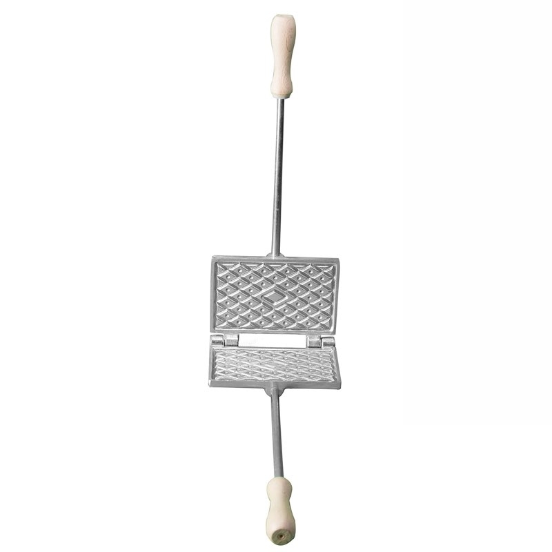 Biscottiera rettangolare CBE sottile per cottura su fiamma libera, specifica per produrre la classica ferratela abruzzese a grata (neola o pizzetta). Spessore cialda: 2,5 mm. Dimensioni 10X15 cm, 0,8 kg.