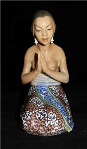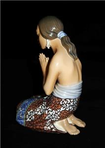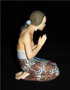 You have found the missing piece to your figurine collection! Here is a porcelain figurine from Dahl Jensen, made in Denmark. Titled EVENING PRAYER, it depicts a Balinese woman wearing a batik sarong with lavender sash kneeling in evening prayer. Measuring 6 1/2" tall by 4 1/4" wide by 3" deep, it is in excellent preowned condition with no chips cracks or signs of wear. Please see our Not Just China store for more of this pattern and other collectibles.