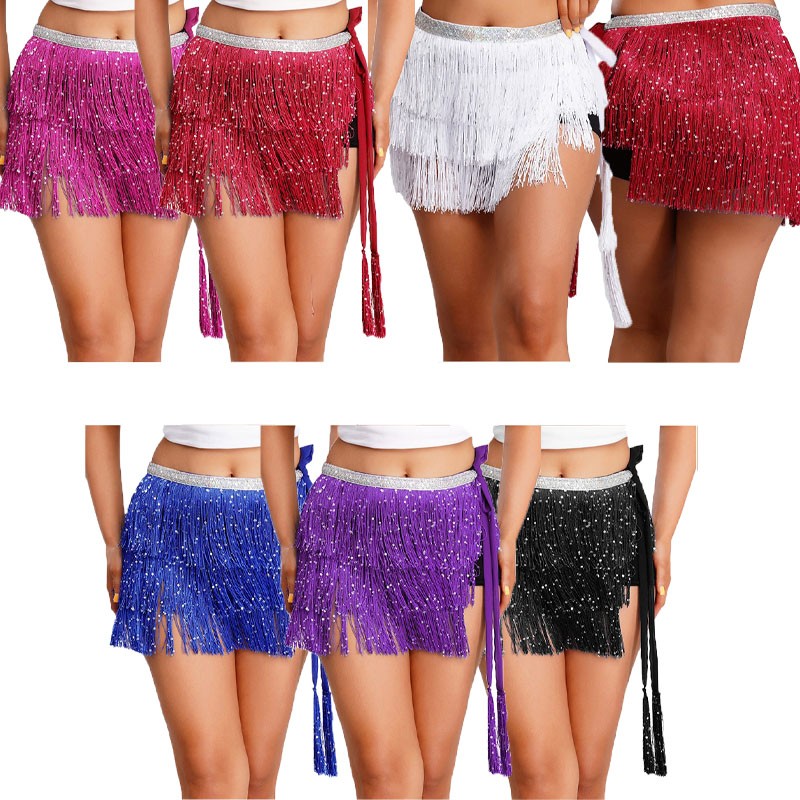 Womens Costume Party Skirt Latin Hip Scarf Tassel Dance Lace-up Belly ShinyUSD 6.49