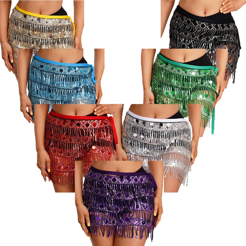 Womens Hip Scarf Lesson Dancewear Stage Hip Wrap Halloween Skirt Dancing SequinUSD 5.99