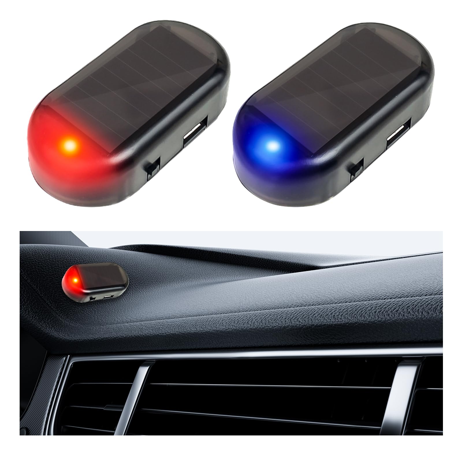 【Anti-Theft Function】: This product has a set of two lights, one is red and the other is blue. The combination of these two lights automatically flashes every five seconds to simulate the alarm system light. It can deter thieves, scare away those with bad intentions, deter them from approaching, and prevent potential theft at night.