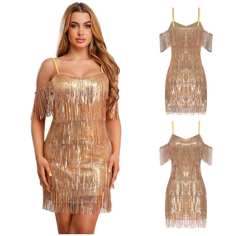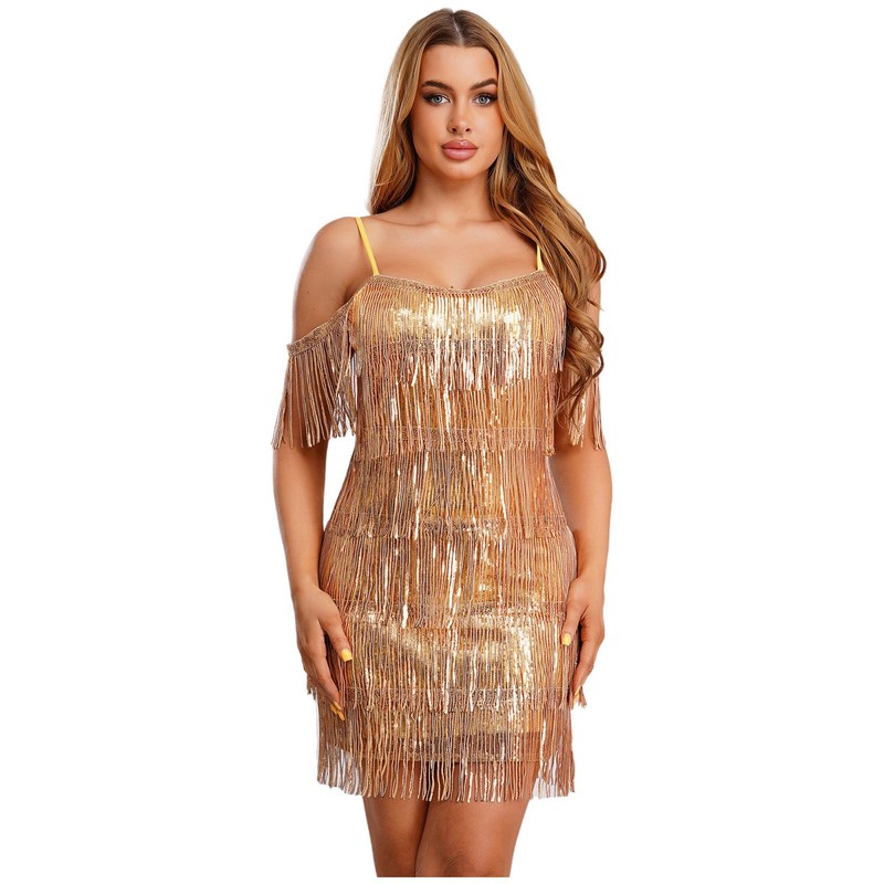 The mini-dress style is youthful and trendy, allowing for easy movement during dance performances or parties.