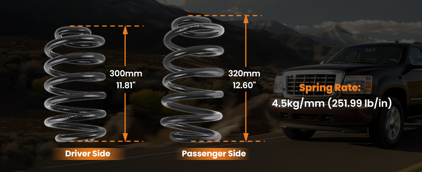 Spring length: Driver side: 320mm/12.60" Passenger side: 300mm/11.81"