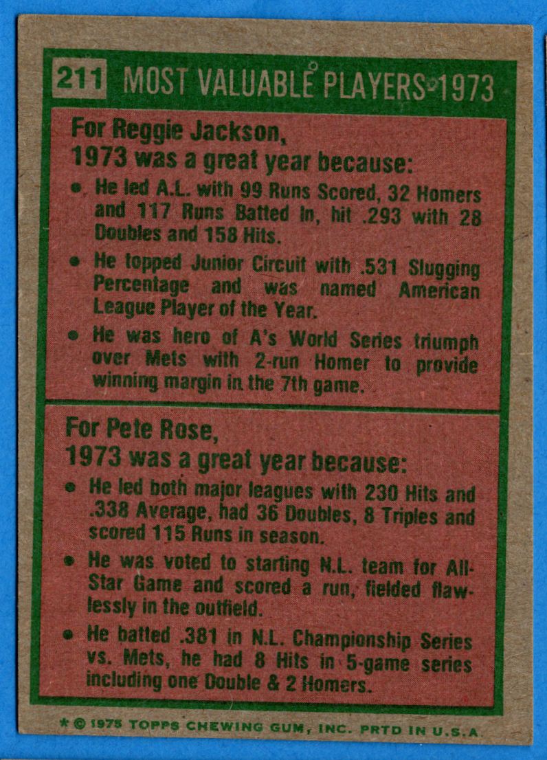 | 1975 Topps Most valuable Players Oakland Athletics/Cincinnati Reds #211 |