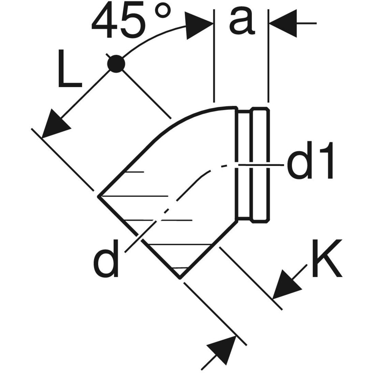 Coude de raccordement Geberit PE 45° avec prise de raccordement, pour WC suspendu