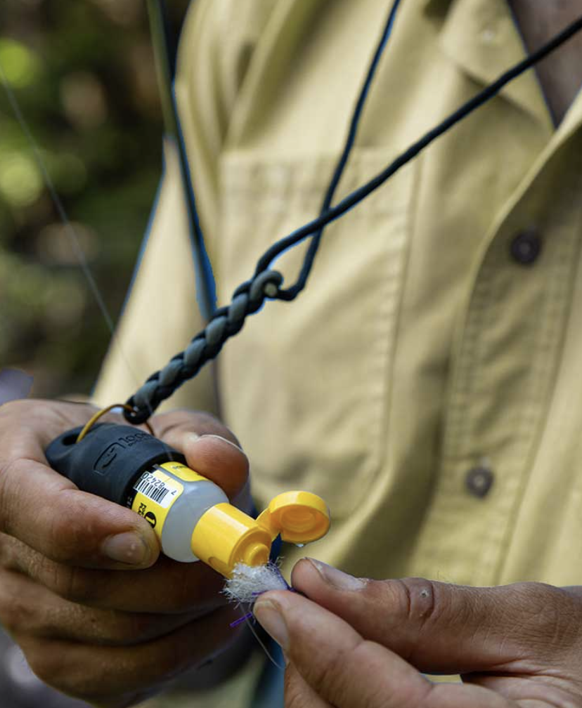 Heavy-duty, lightweight, indestructible and designed to fit all of our 1/2 oz bottles (Aquel, Lochsa and Royal Gel), the Silicone 1/2 oz Caddy securely fastens to any pack, bag or vest using a stainless steel tool tether, keeping your floatant right where you need it.