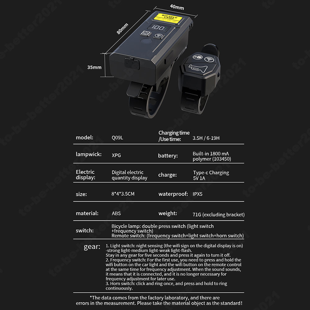 Featuring a built-in 1800mAh battery, this bicycle front lamp offers a runtime of 7 to 19 hours, perfect for long-distance