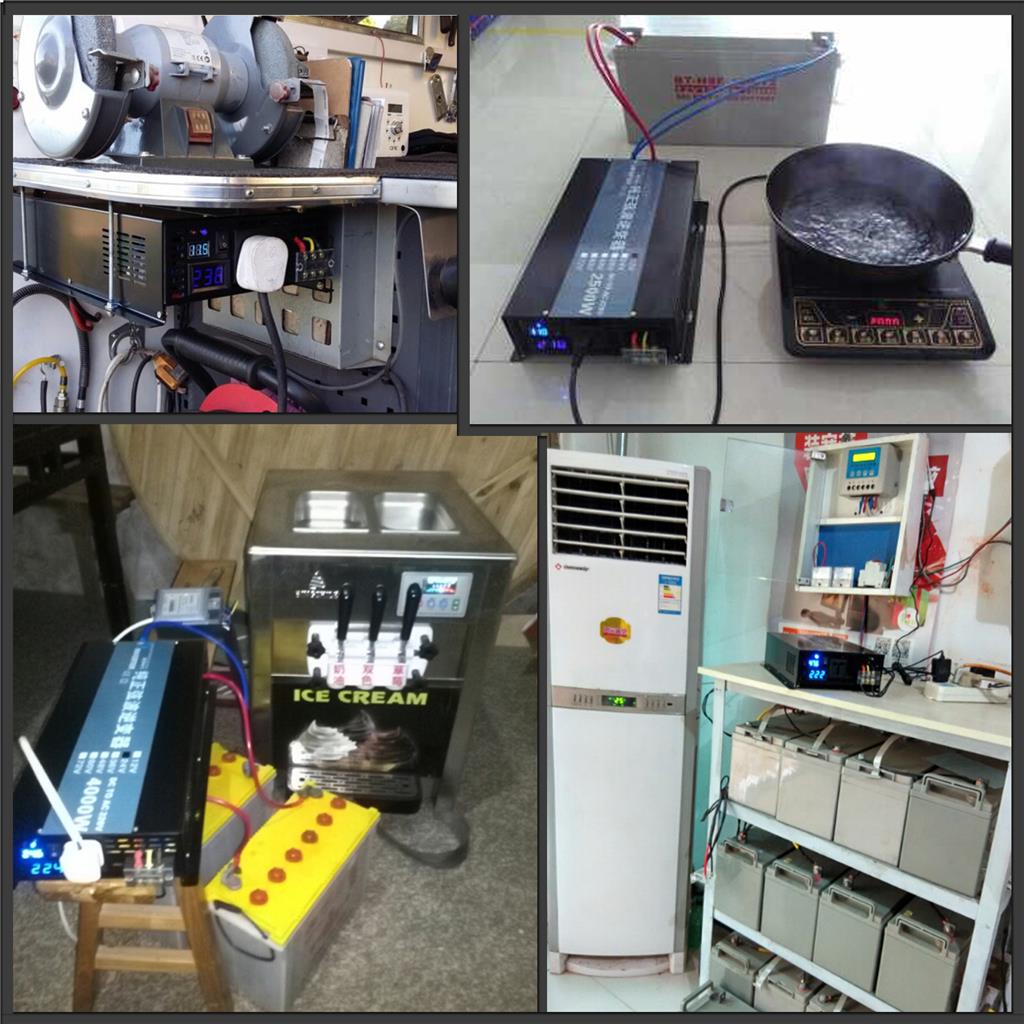 | Office Equipment: PC,Laptop,Printer,etc. Home Appliances: TV,Air conditioner,Oven,Cooker,DVD,GPS,Fridge,Cleaner,Washer, Fan,Light,etc. Industrial Equipments: Pump,Compressor,Motor,etc. [PS:Leave us messages if you are not so sure about the inverter power you need]