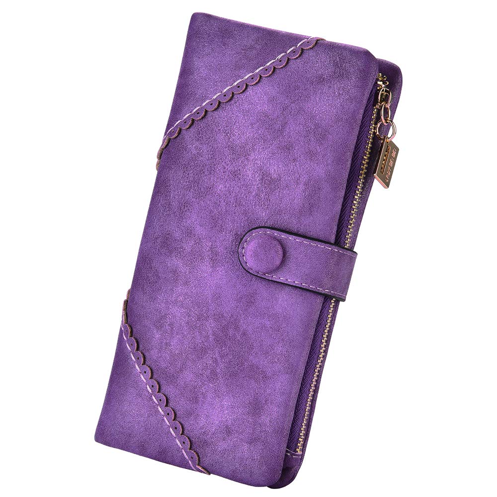 Bird&Fish Women Vegan Leather Wallet Bifold Clutch Large Large, Purple