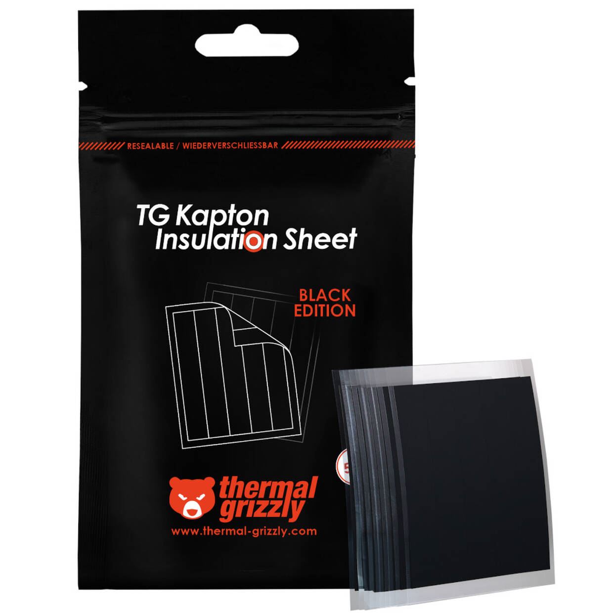 It is excellent for masking components such as SMDs on a CPU or GPU when using Conductonaut liquid metal, Carbonaut, or KryoSheet. Compared to the standard Kapton Insulation Sheet, the Black Edition is slightly thinner (30µm instead of 40µm) and has a significantly higher breakdown voltage of 5 kV. Kapton Insulation Sheet Black Edition is supplied packaged in 10 sheets, each containing 5 Kapton adhesive strips. Each individual adhesive strip is 10 millimeters wide and 60mm long, with a thickness of 30µm. It is recommended to thoroughly clean the contact surface where the insulation sheet is applied (e.g., with isopropanol).