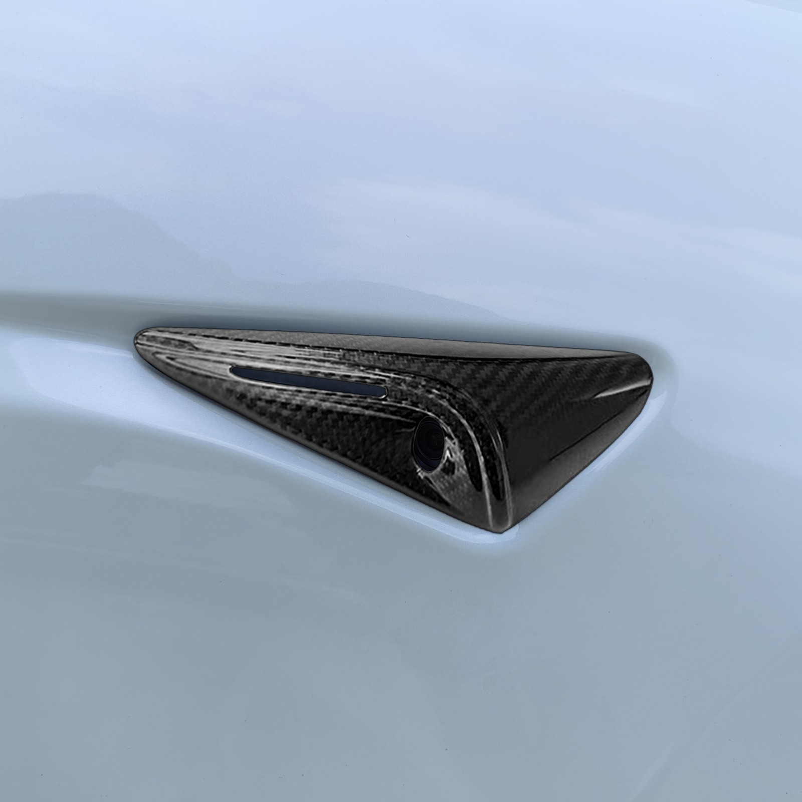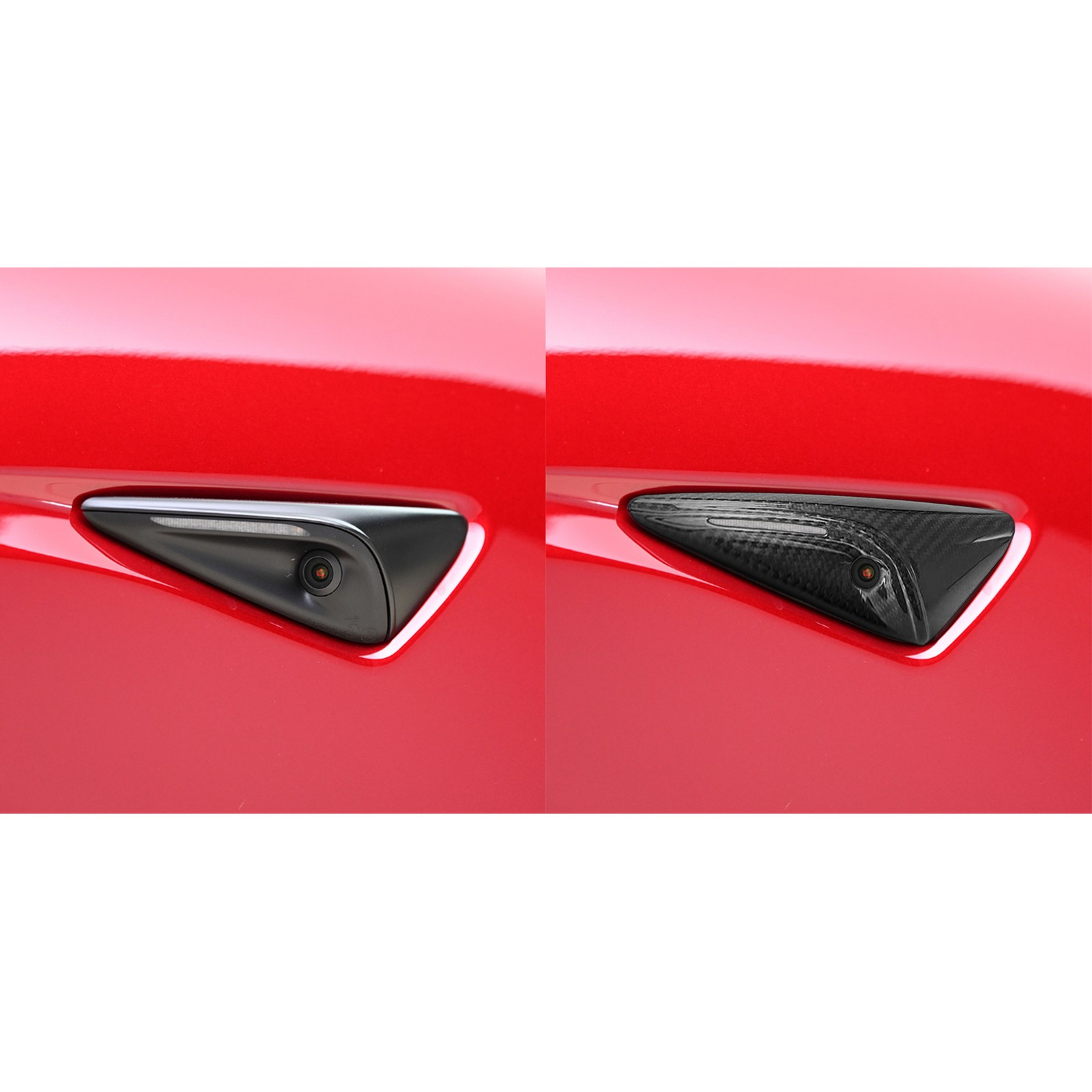 Genuine Carbon Fiber Side Fender Camera Trim For Tesla 2023-2024 Model 3/Y HW4.0