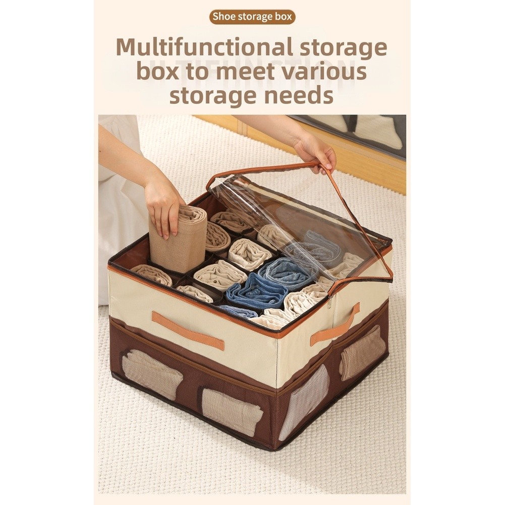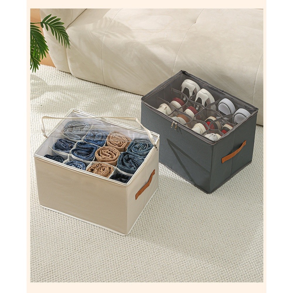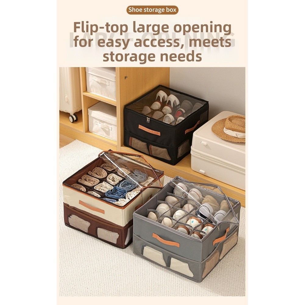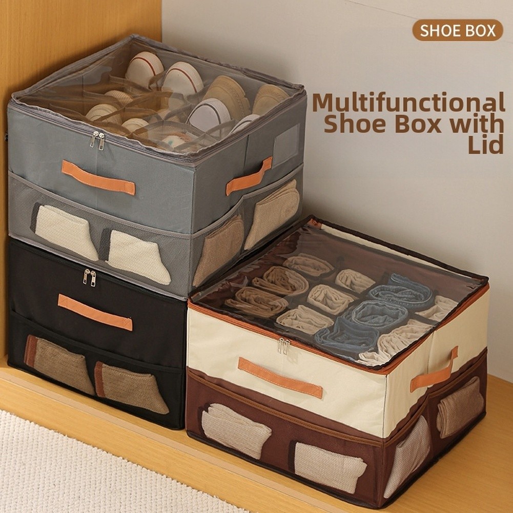 Boîte de Rangement à Chaussures Pliable avec Couvercle Plusieurs Compartiments
