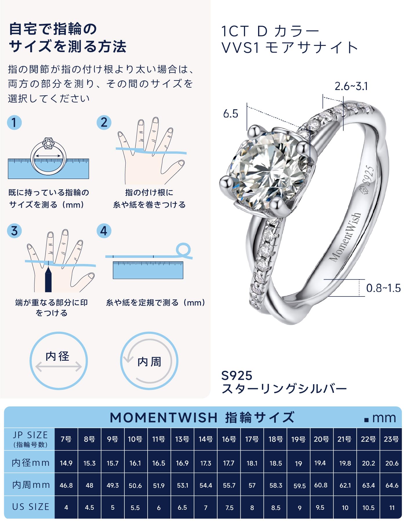 The MomentWish Moissanite Ring combines a classic 925 silver design with the sparkle of a 6.5mm/1 carat moissanite, making it the perfect piece for formal occasions such as engagements, proposals, and wedding anniversaries.
