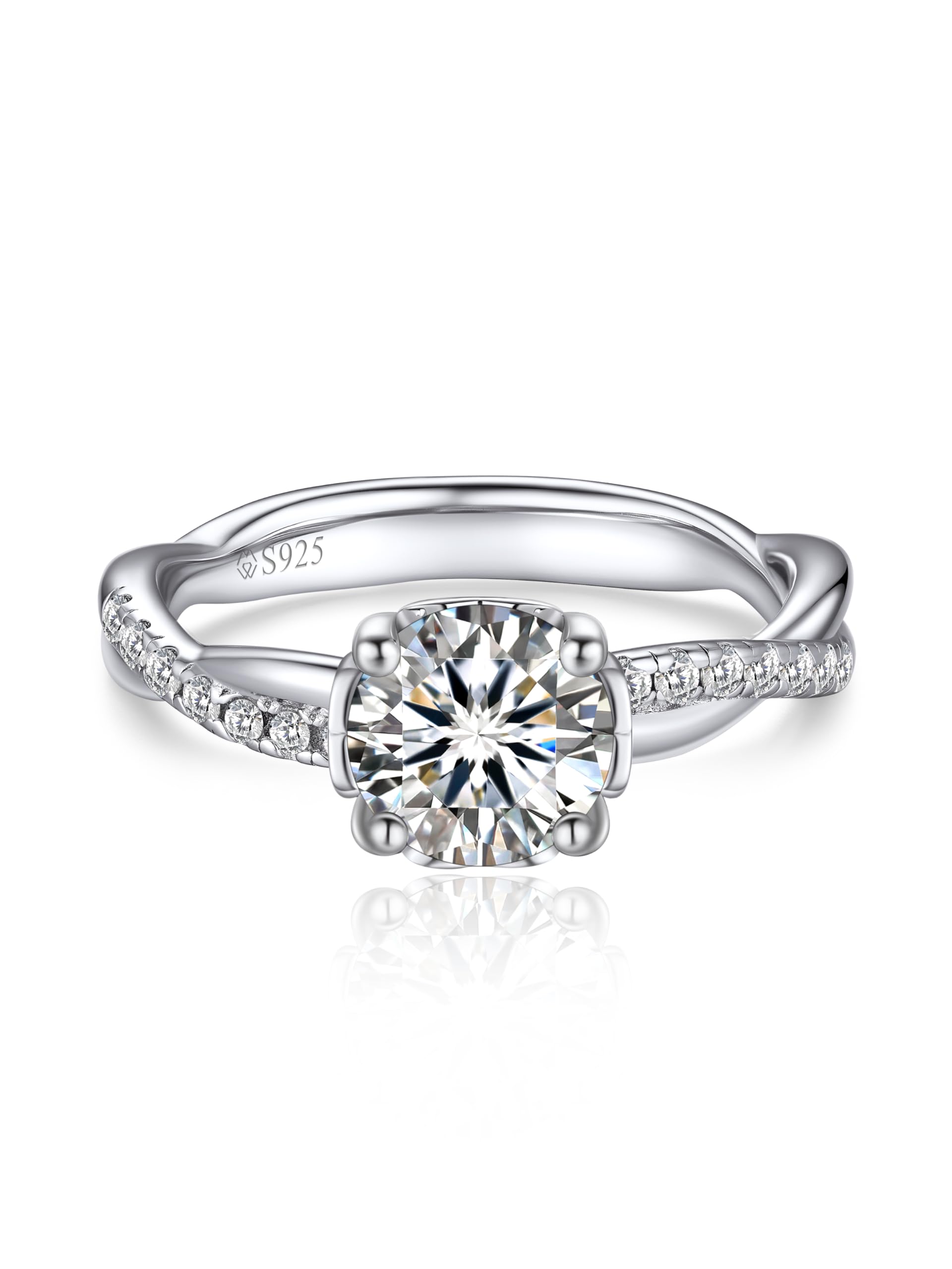 [A Proposal Ring Symbolizing the Bond of Love] The central moissanite stone represents the center of love, while the surrounding smaller stones represent the memories of the couple. The twisted shank design symbolizes eternal bonds and serves as an engagement ring or wedding band, protecting strong love.