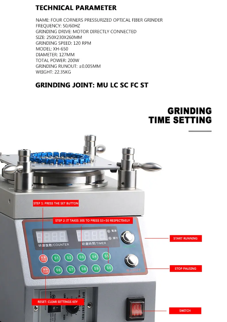 Auto Optical fiber grinding machine φ127mm 220V 50/60hz Four-corner pressure Wire grinder FCSCLC/PCAPC Grinding Disc Clamp