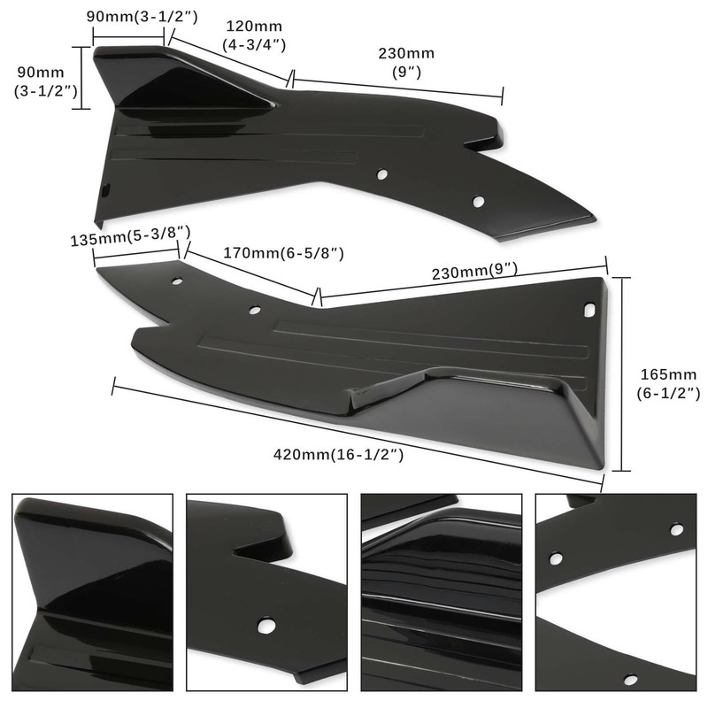 Features: 100% brand new direct replacement as shown in the picture. Universal modified rear lip and side skirt for car sedan. Comes with 2pcs Rear lip wrap angle splitters. Custom fit most vehicles, product may require drilling holes and apply bolts to attach to your bumper. Use double side adhesive tape or drill holes and bolt on to your bumper (bolts are included)